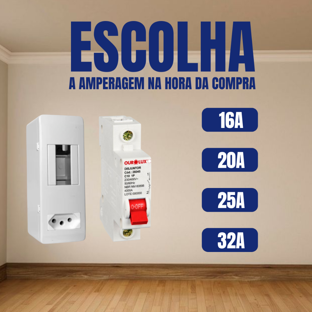 Caixa com disjuntor + Tomada 20A para Ar-condicionado - Proteção e Segurança P/ Eletrônico