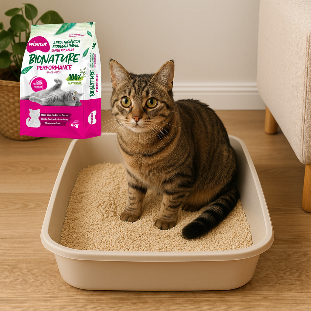 Kit 2 Areia Sanitária De Mandioca Grãos Mistos Para Gatos Biodegradável Wisecat 8kg
