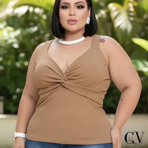 Blusa Regata Feminina Nó Plus Size Tecido Confortável 46 ao 50