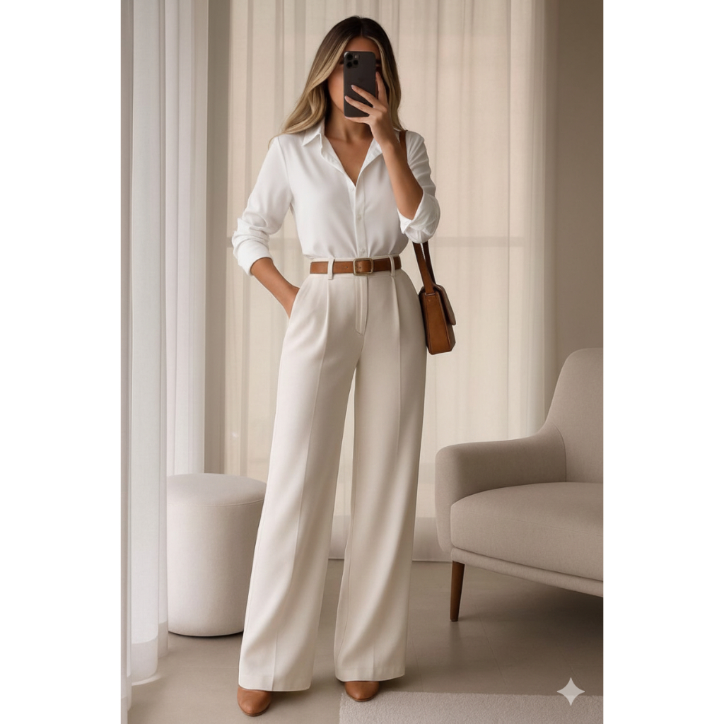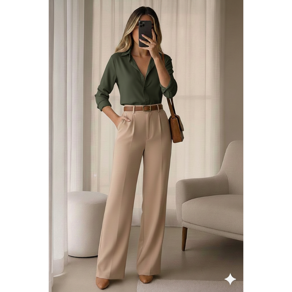 Conjunto Feminino Sofisticado de Blusa e Calça Alfaiataria – Elegância e Conforto para Médicas e Profissionais da Saúde