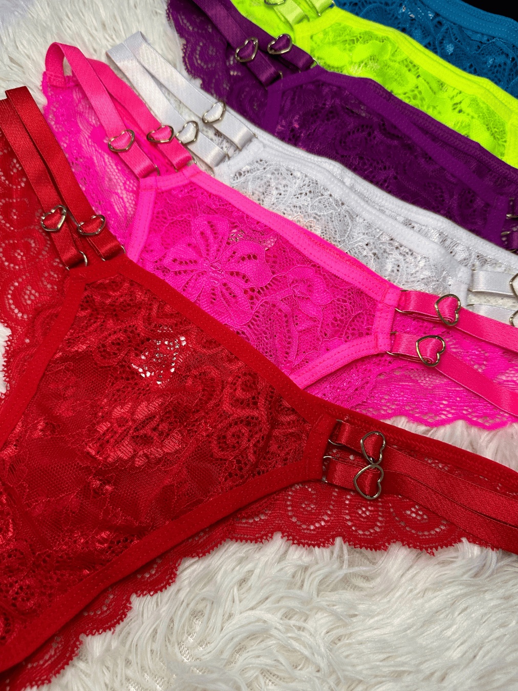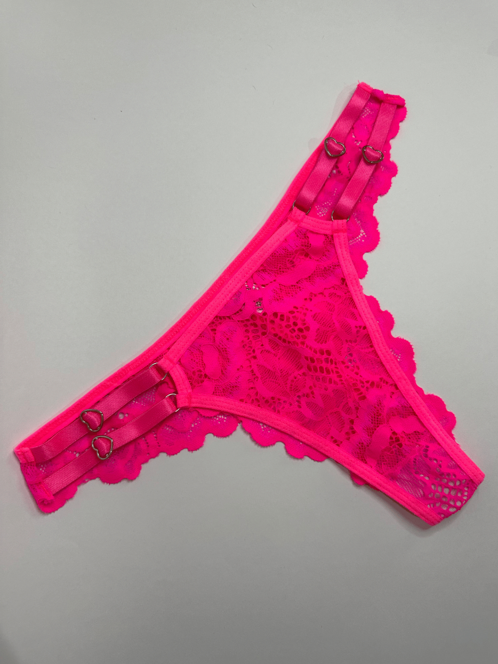 KIT 3 Calcinhas Renda Fio Dental Regulagem Coração Lingerie Sexy Sensual 2 Alças Feminino