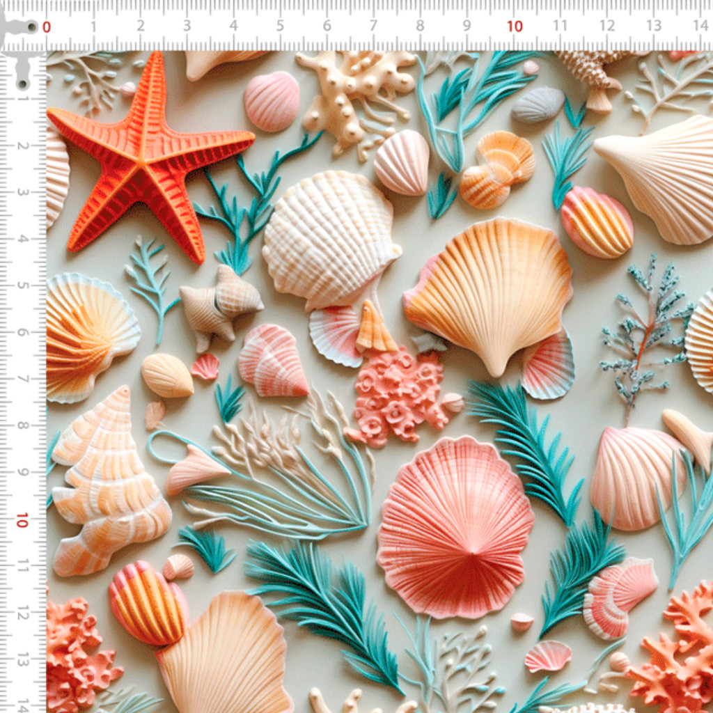 Tecido Sarja Impermeável Estampada 3D Belezas do Mar (0,50 x 1,50 mts)