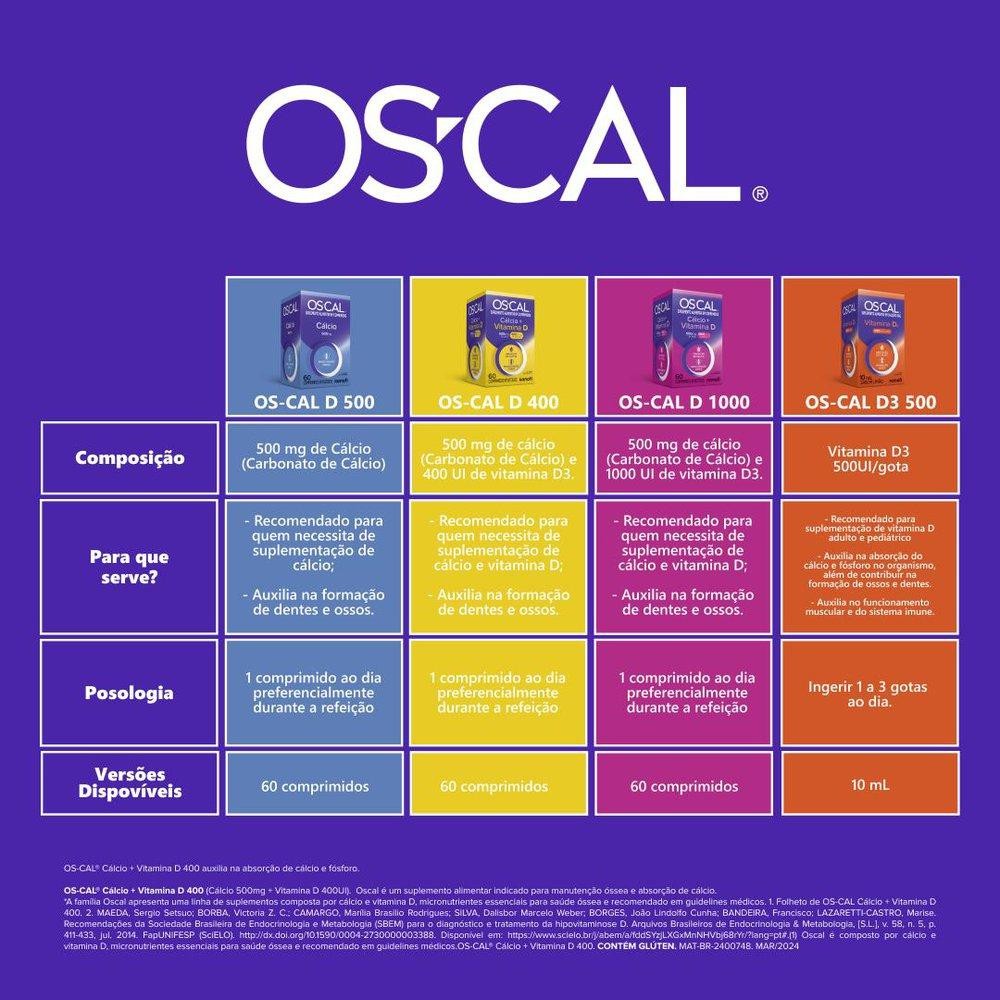 Oscal 500mg + 400UI 60 Comprimidos Revestidos