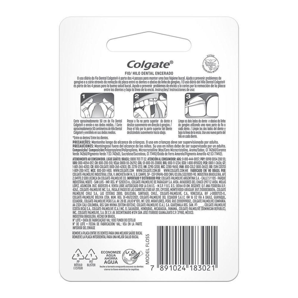 FIO DENTAL COLGATE ENCERADO MENTA 50M