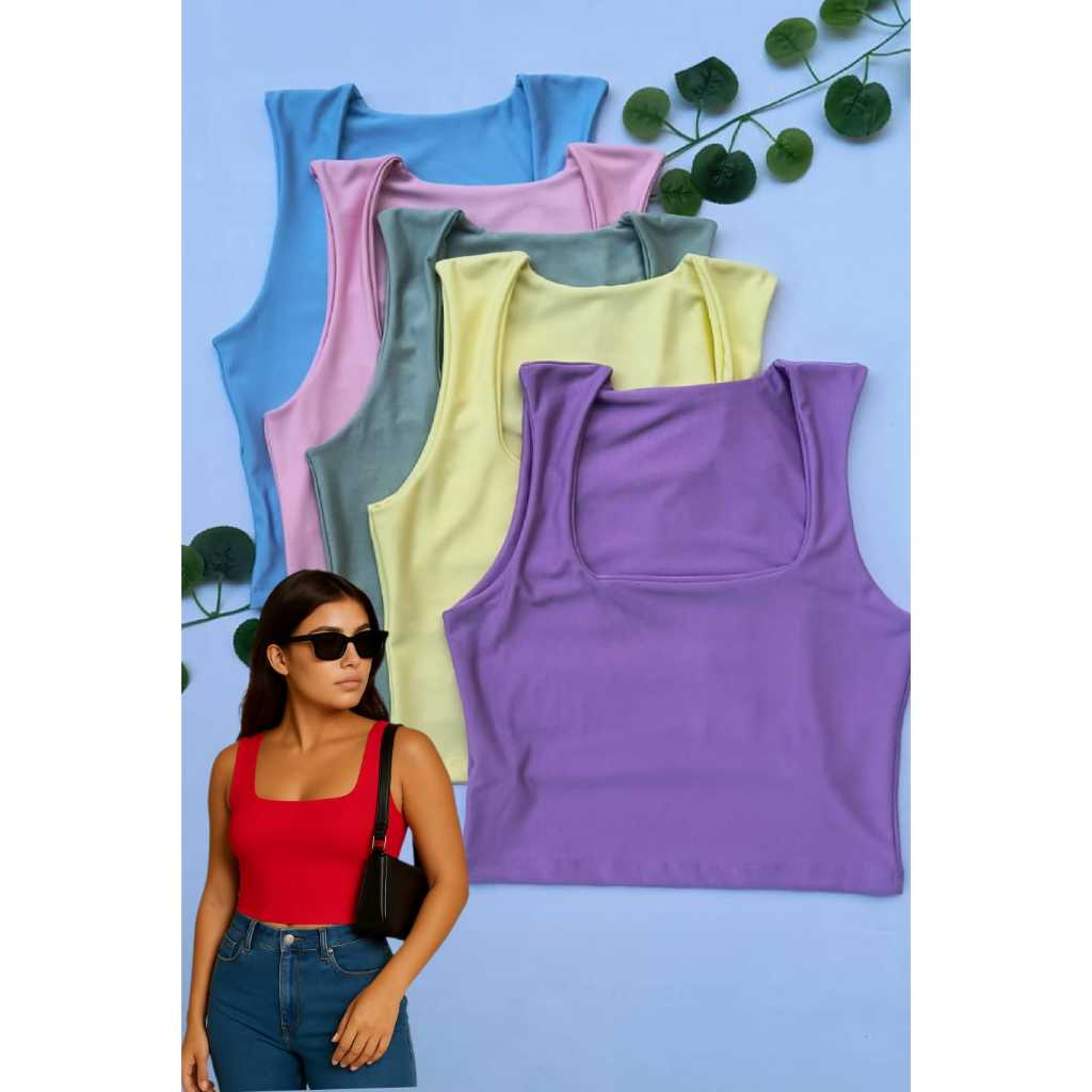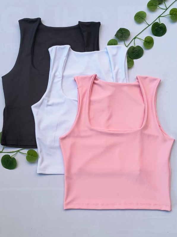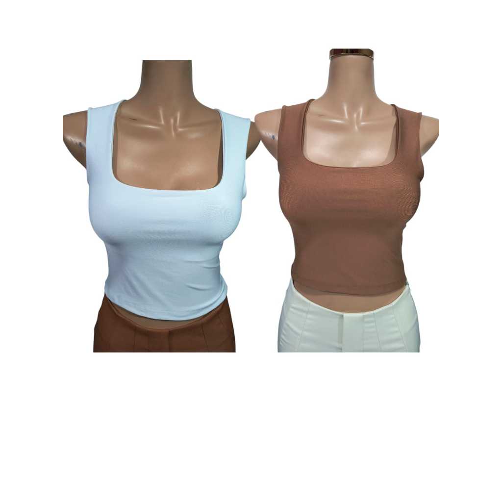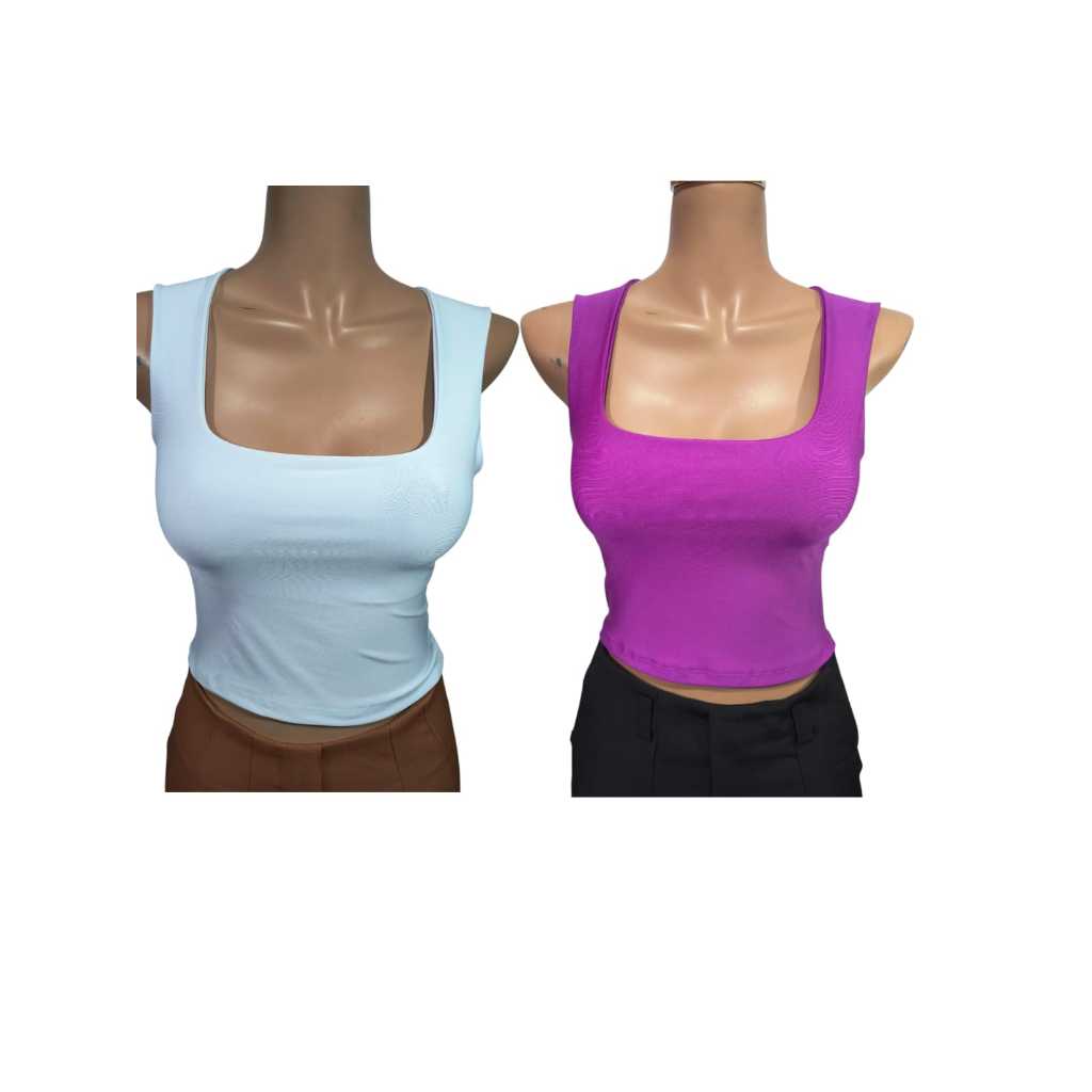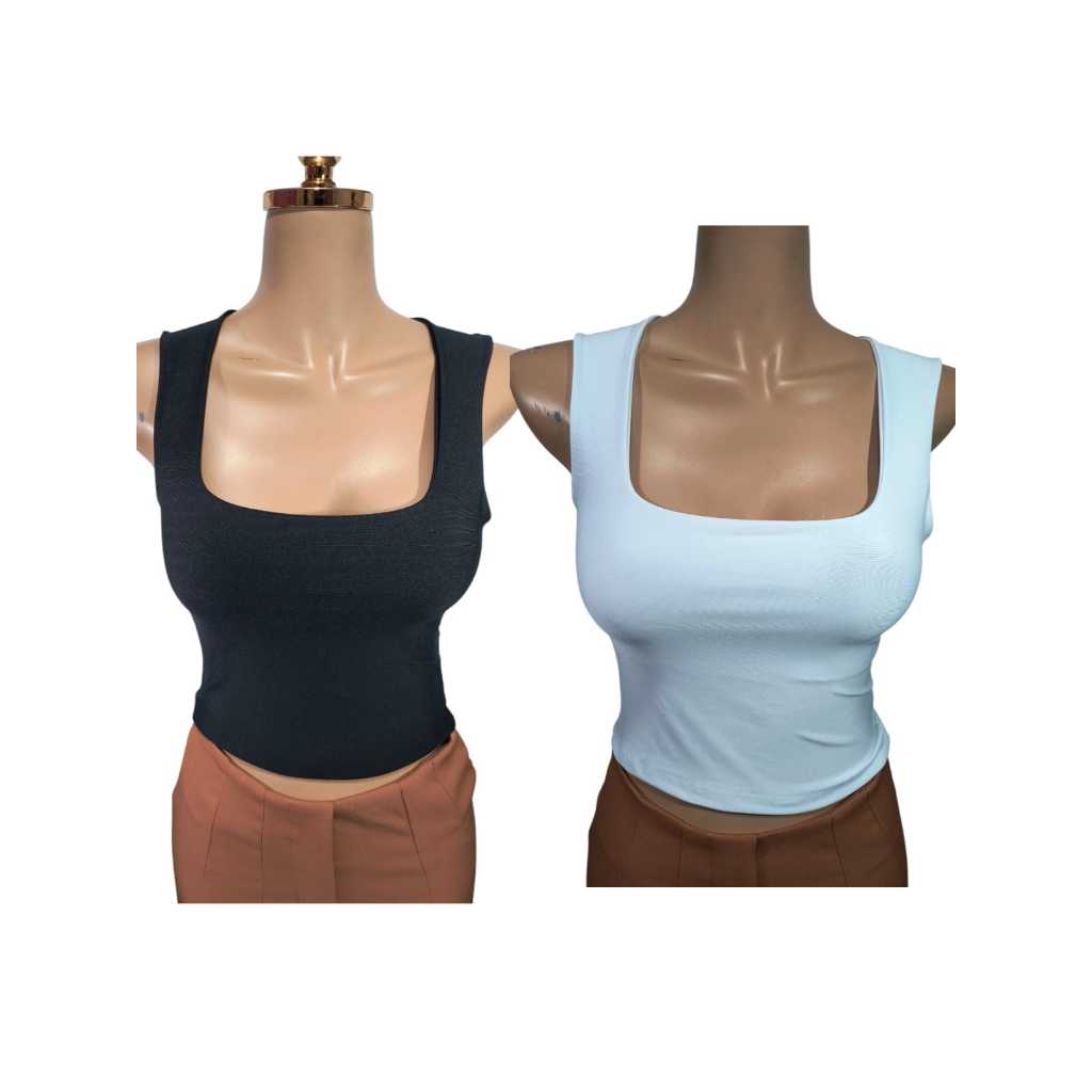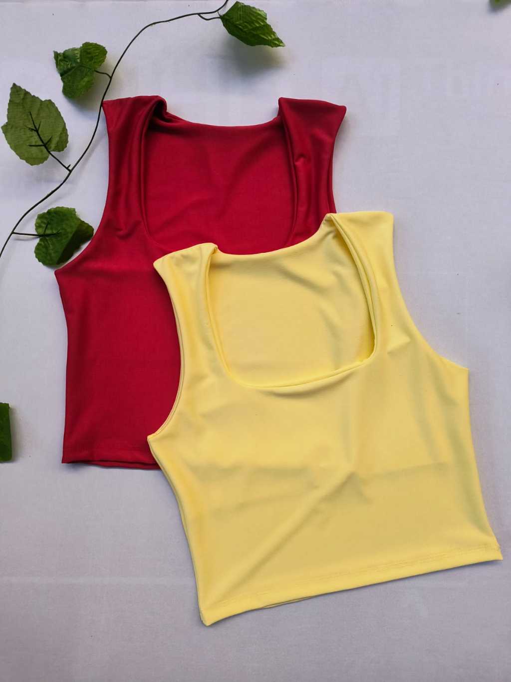 KIT 2 CROPPED REGATA QUADRADO BLUSINHA FEMENINO DA MODA ALTA