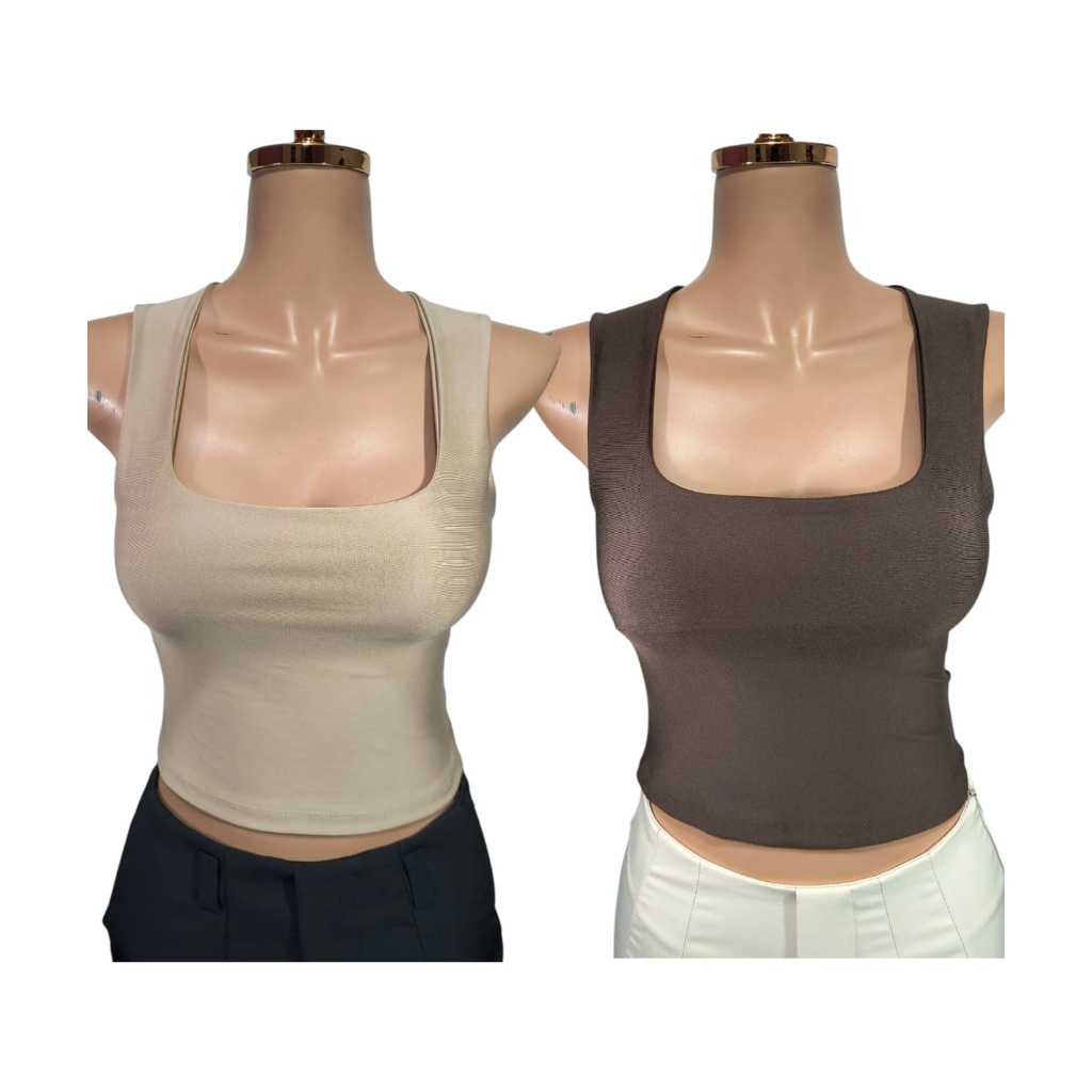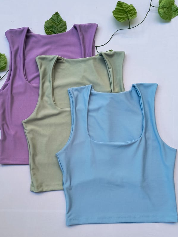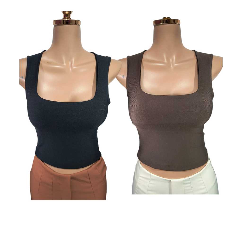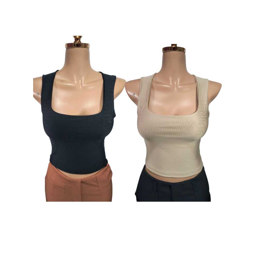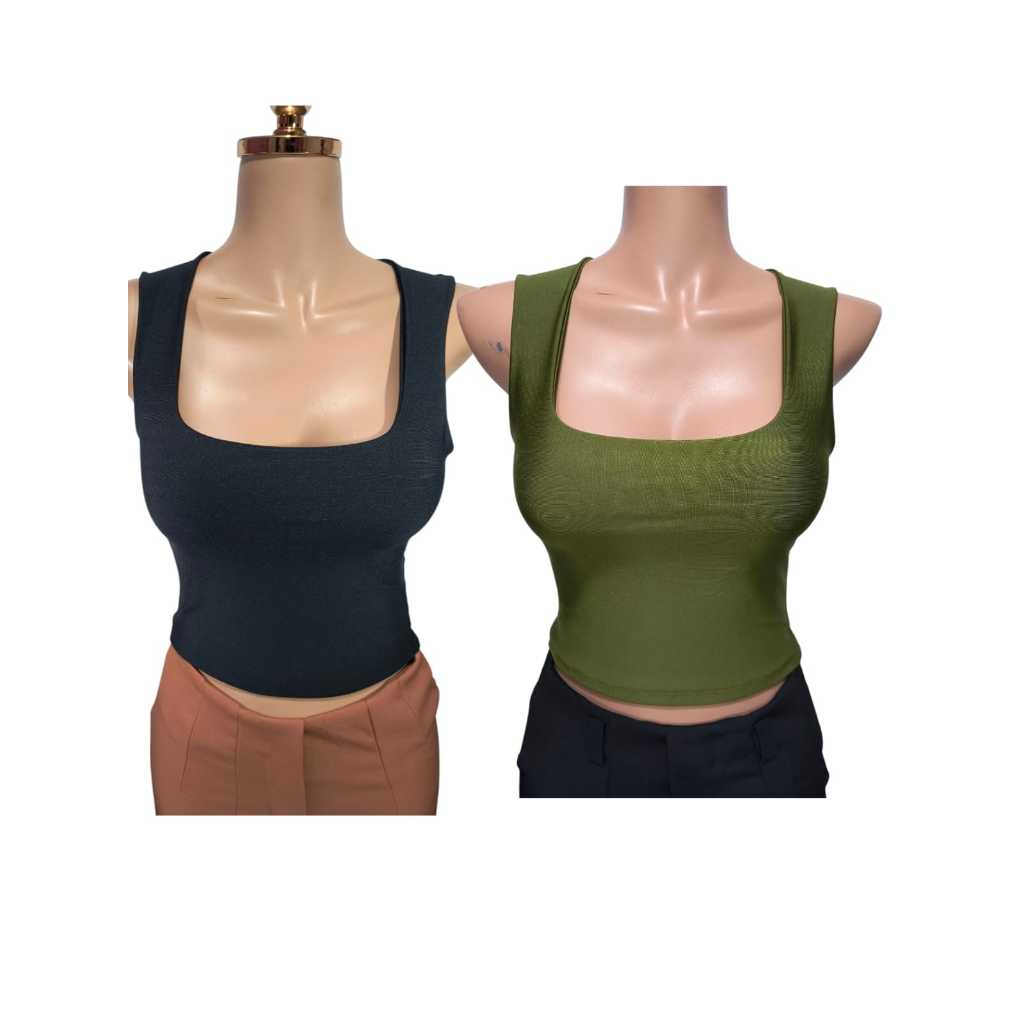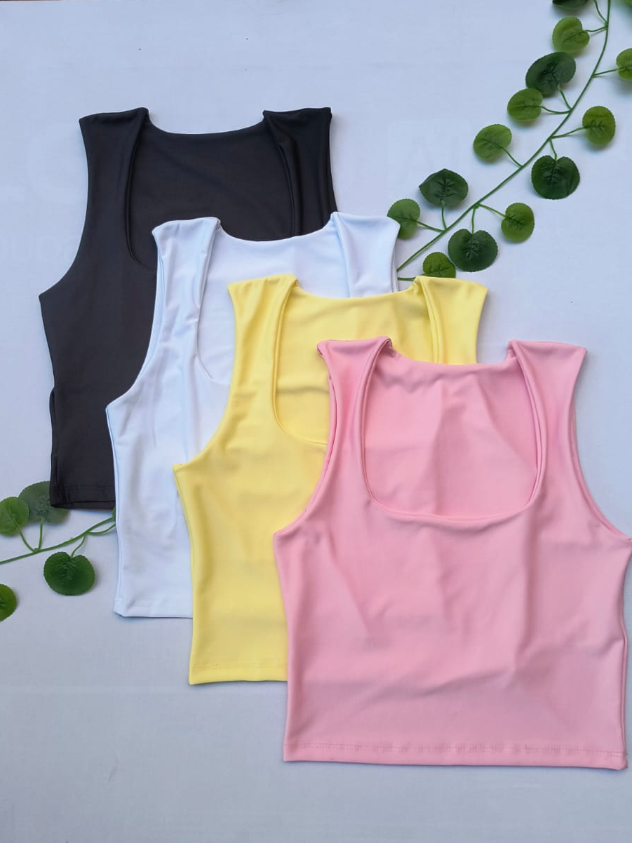 KIT 2 CROPPED REGATA QUADRADO BLUSINHA FEMENINO DA MODA ALTA