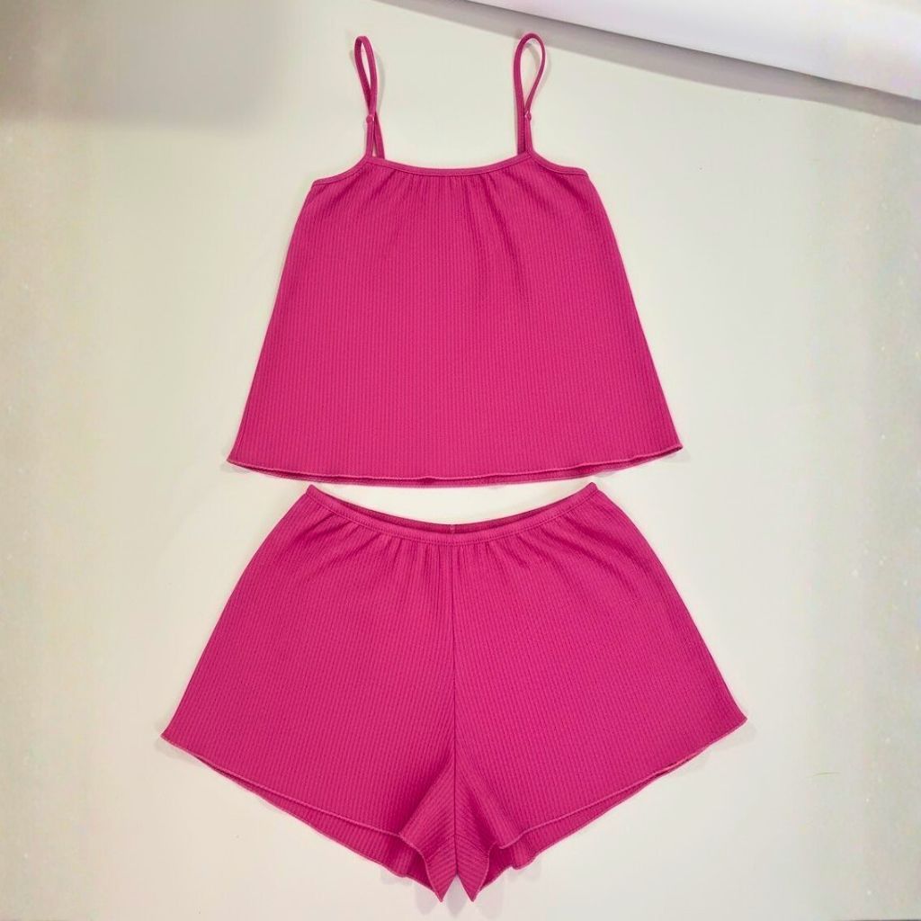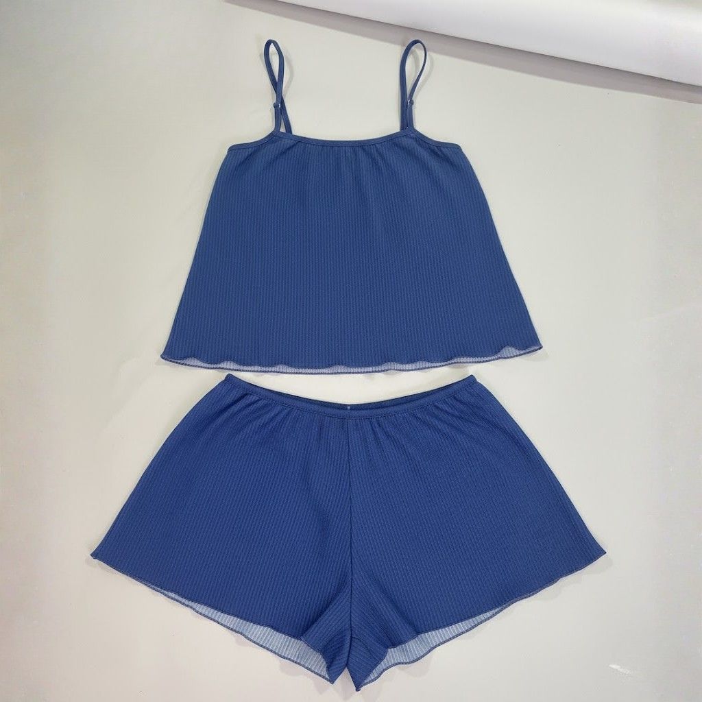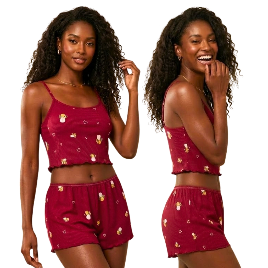 Pijama Blogueirinha Baby Doll Cropped Suede Canelado Lycra Ondinha Short Doll Feminino de Dormir Linha Noite