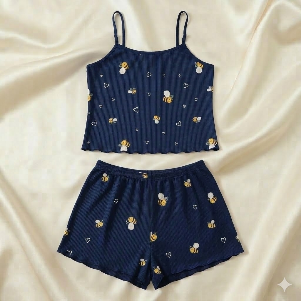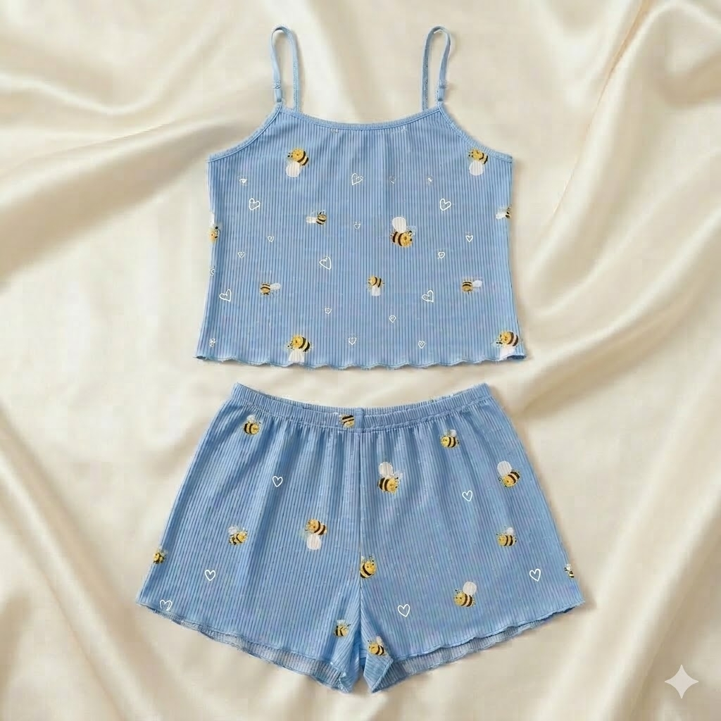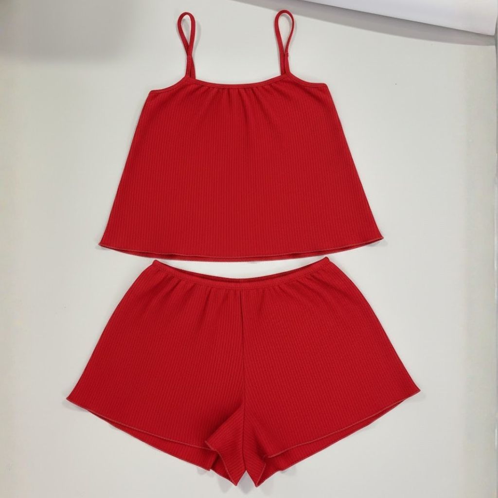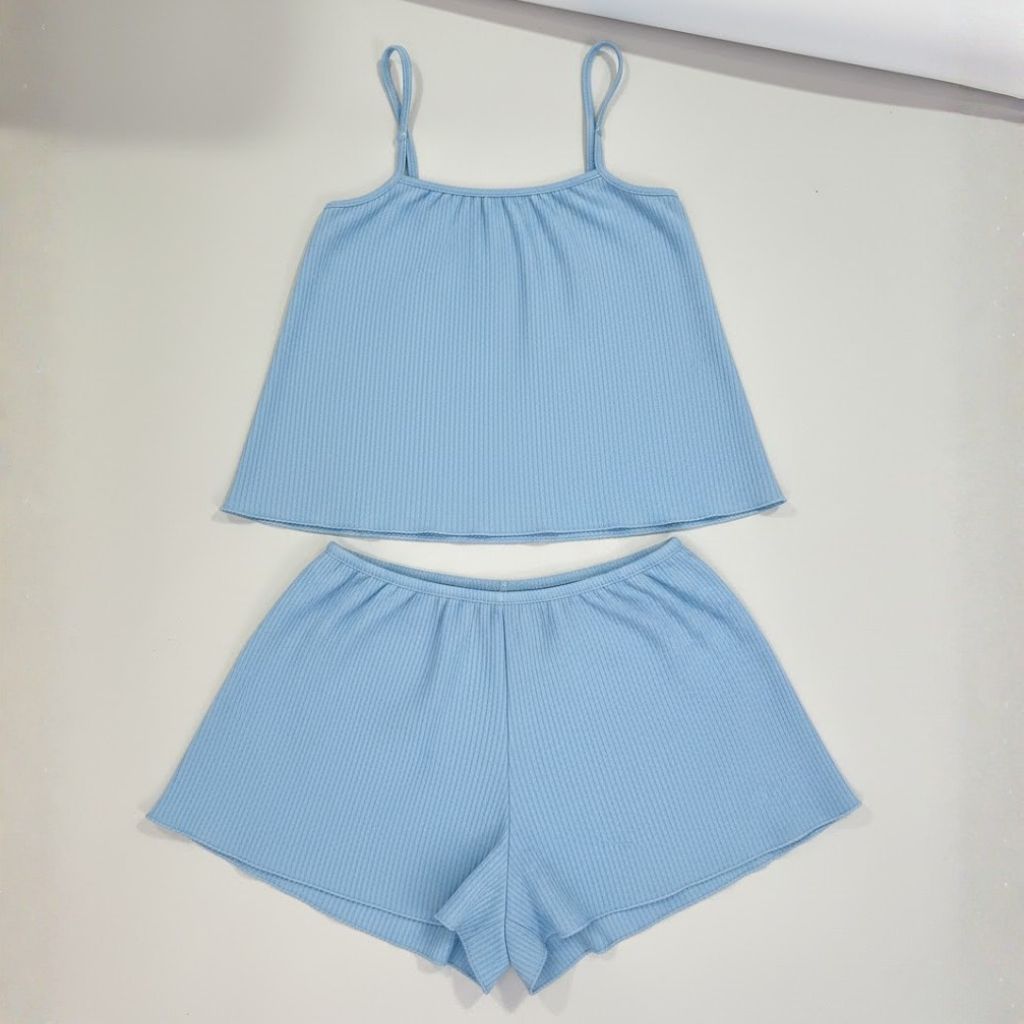 Pijama Blogueirinha Baby Doll Cropped Suede Canelado Lycra Ondinha Short Doll Feminino de Dormir Linha Noite
