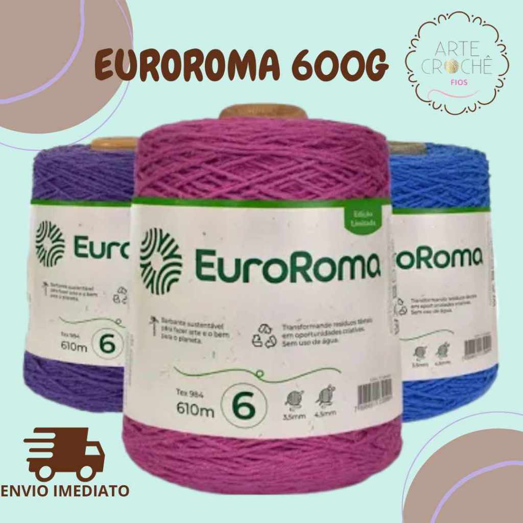 Barbante EuroRoma 600g Fio 6 – Maciez, Resistência e Sustentabilidade para Crochê e Tricô
