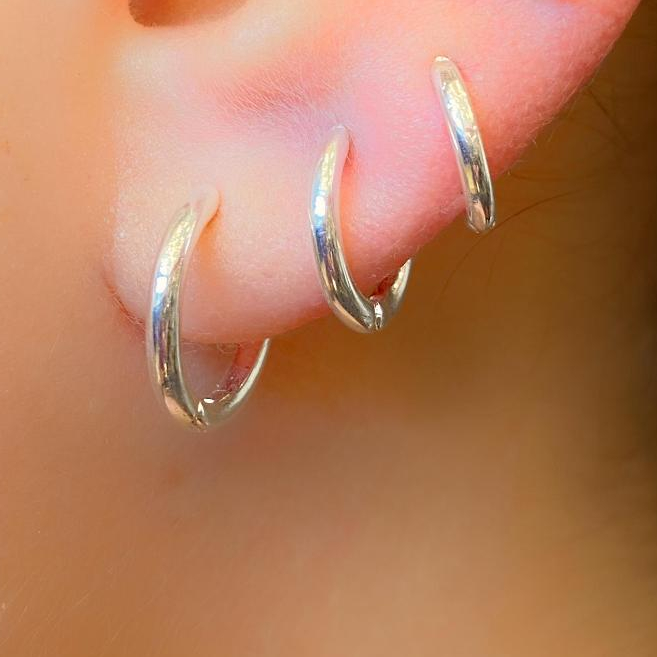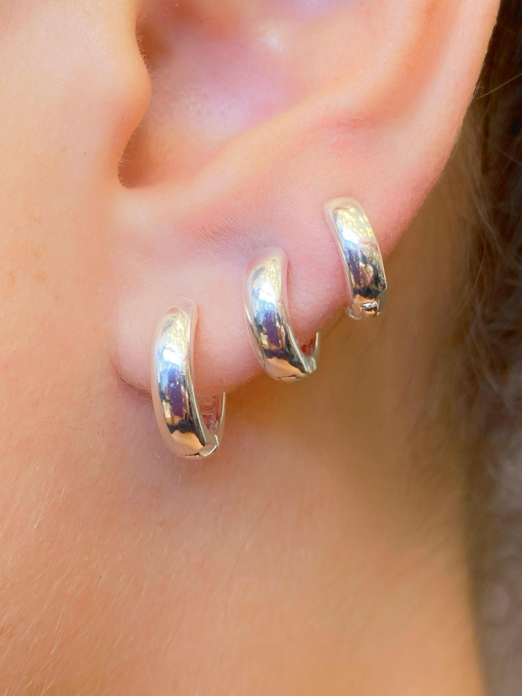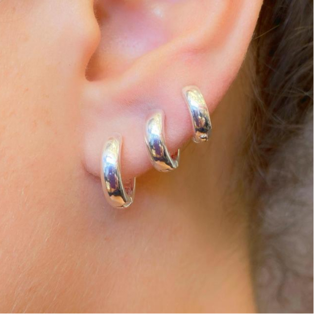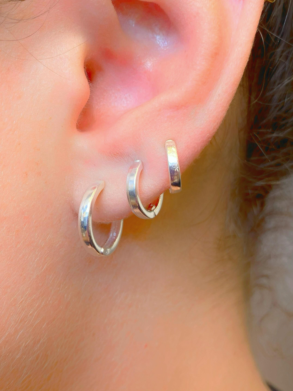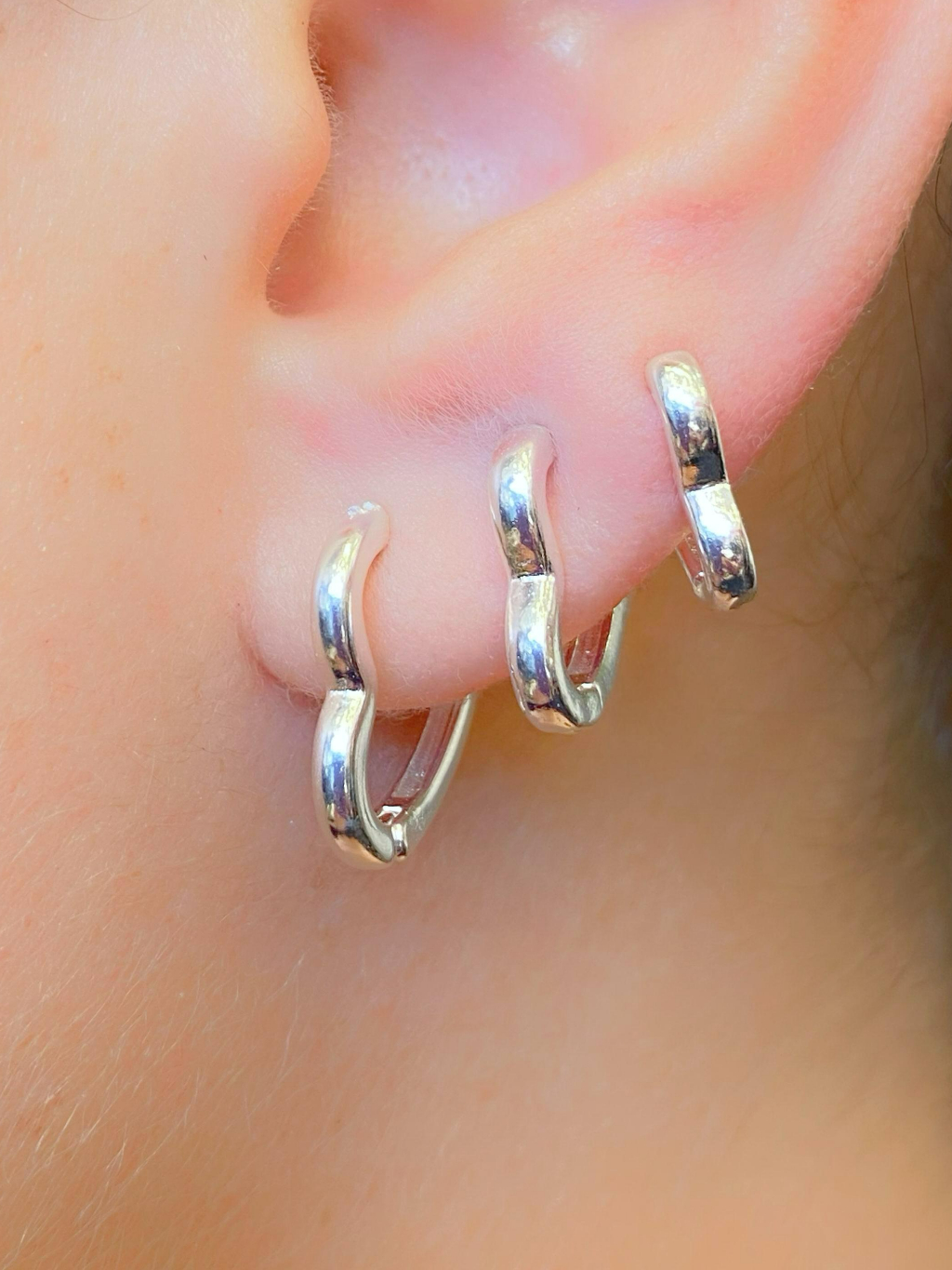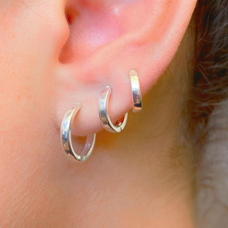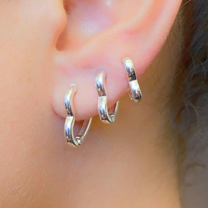 Trio Brincos Prata 925 Argolas Feminina Craquelada Fecho Click Joia Texturizada Delicada Direto de Fábrica 3 Pares