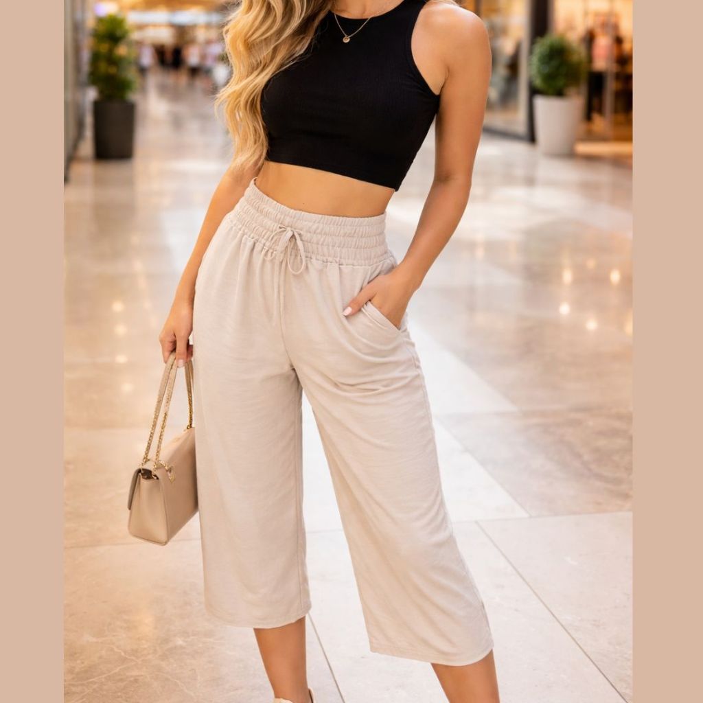 CALÇA PANTACOUR FEMININO DUNA COM BOLSO CINTURA ALTA FORRADA M G e GG