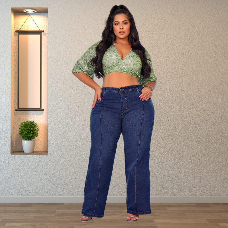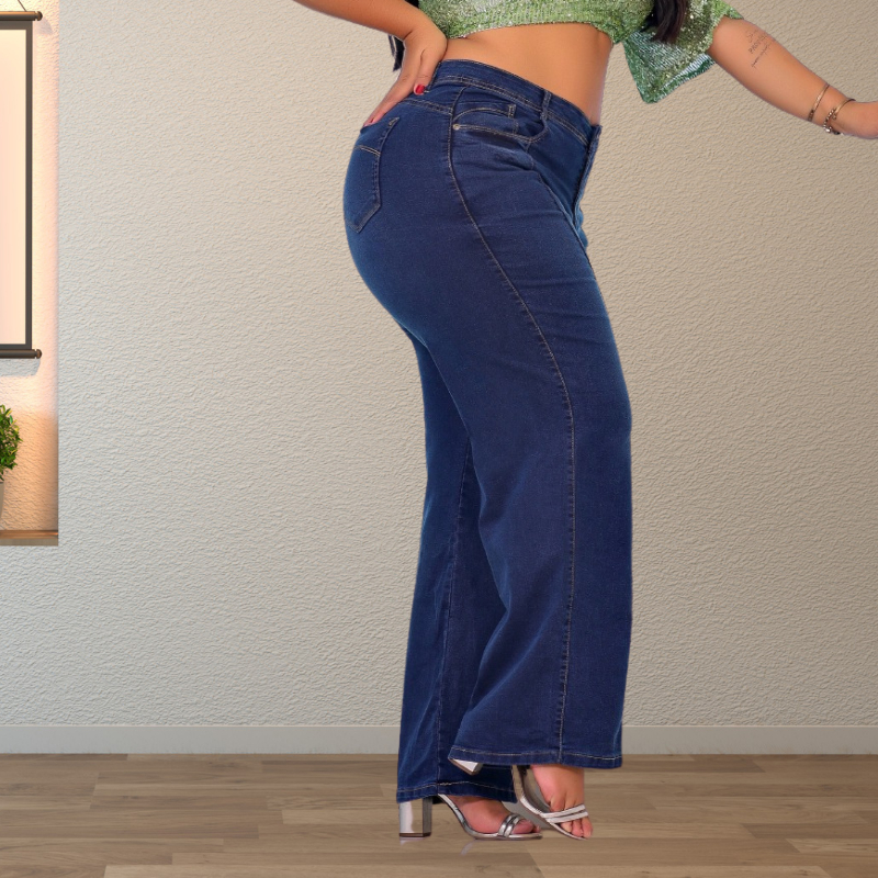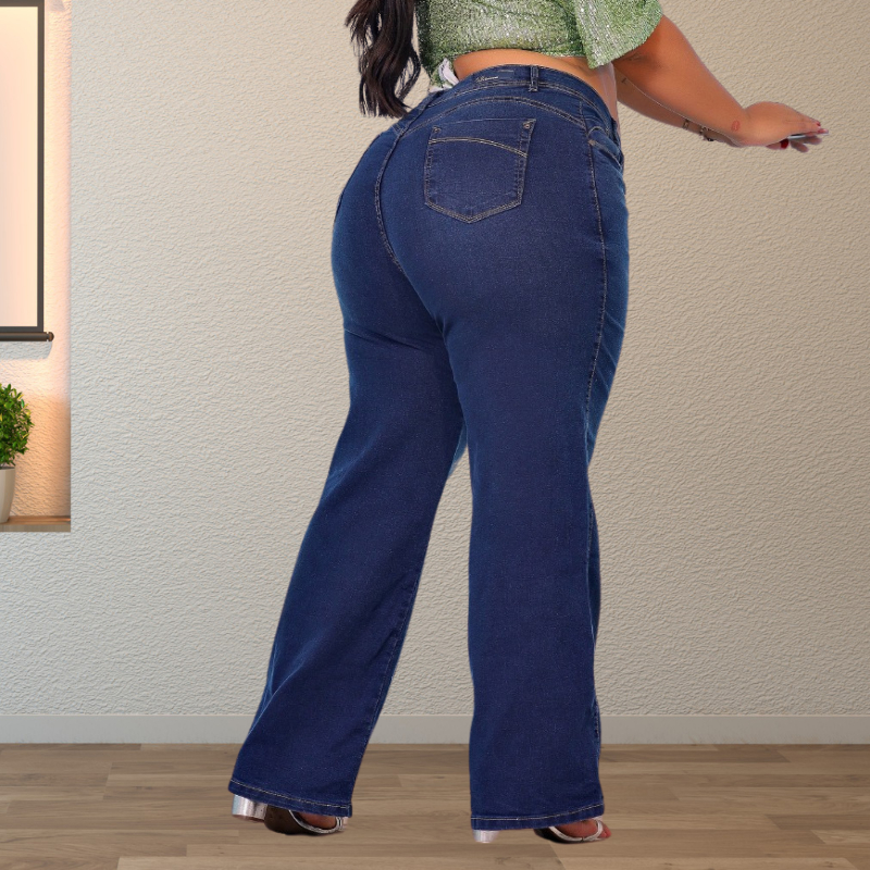 Calça Jeans Flare Plus Size Wide Leggin Com Lycra Retrô Premium