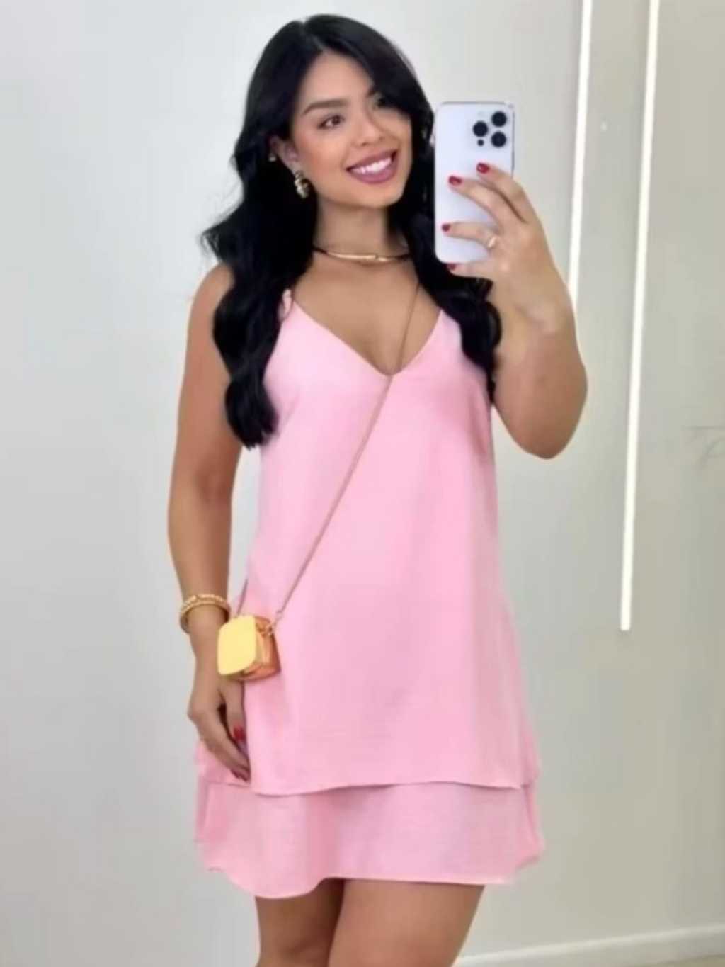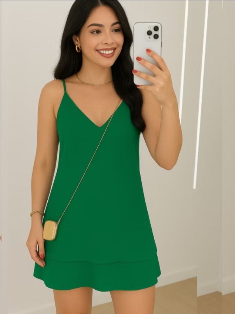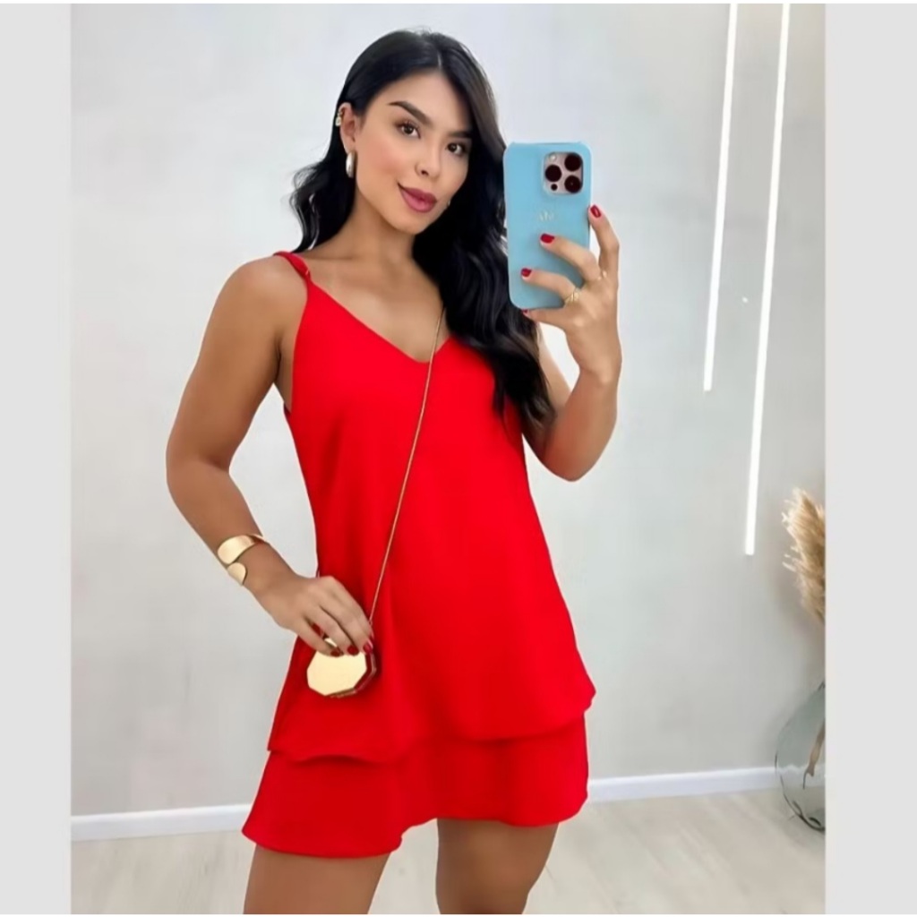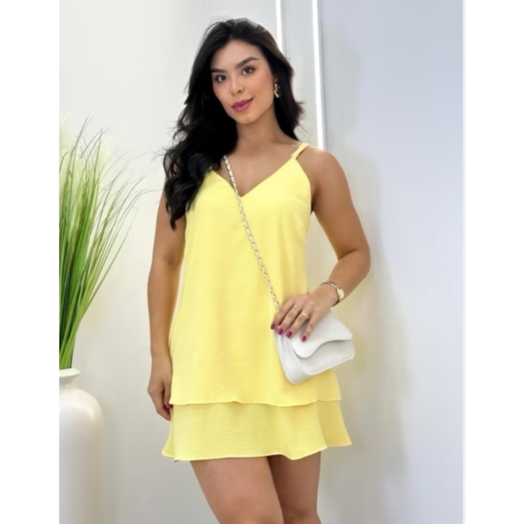 Vestido curto soltinho super elegante clara no tecido duna com babado na parte de baixo moda alto