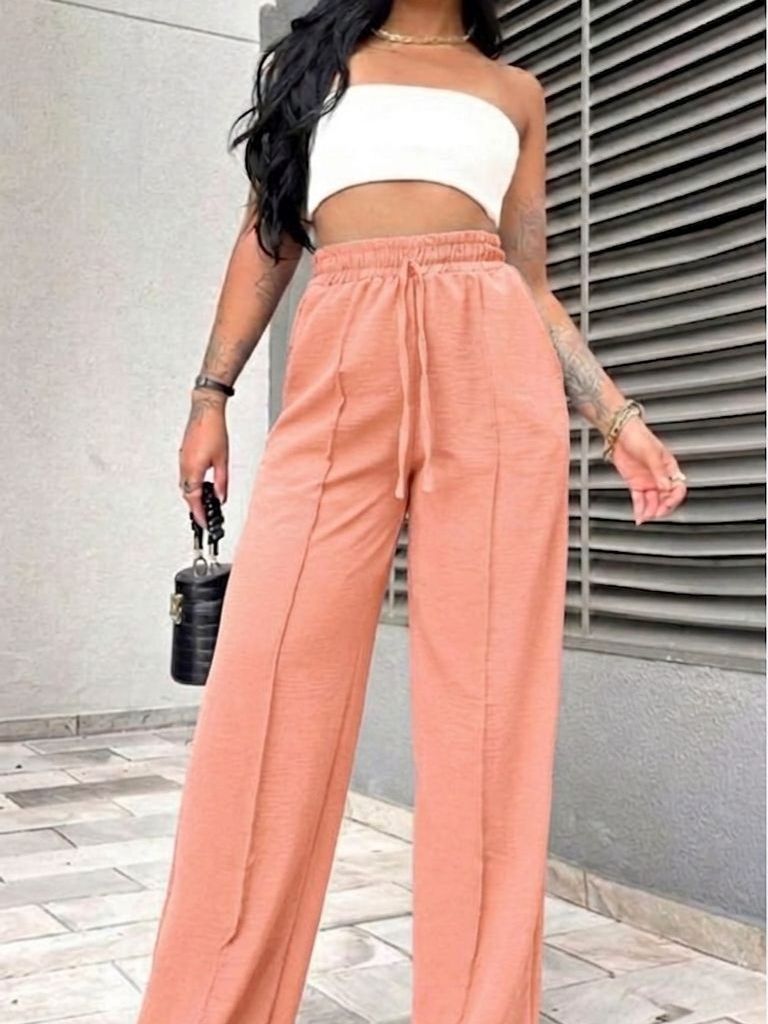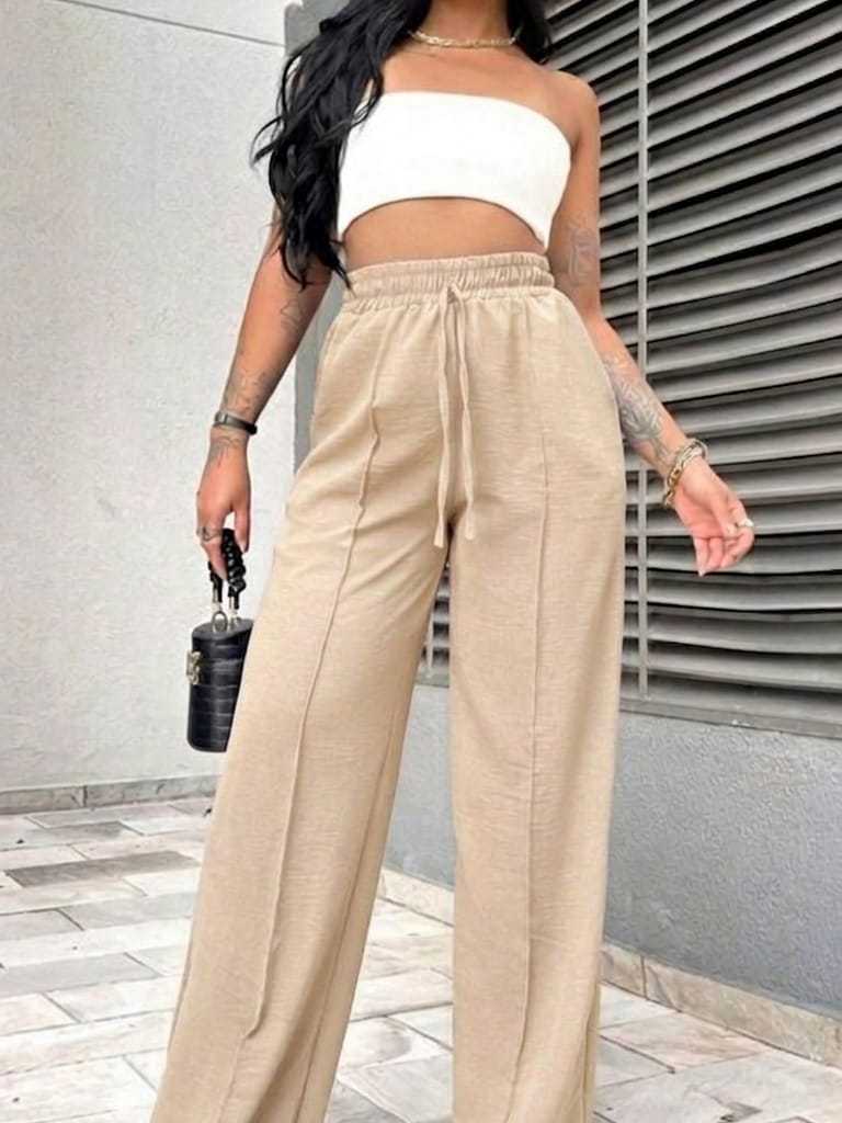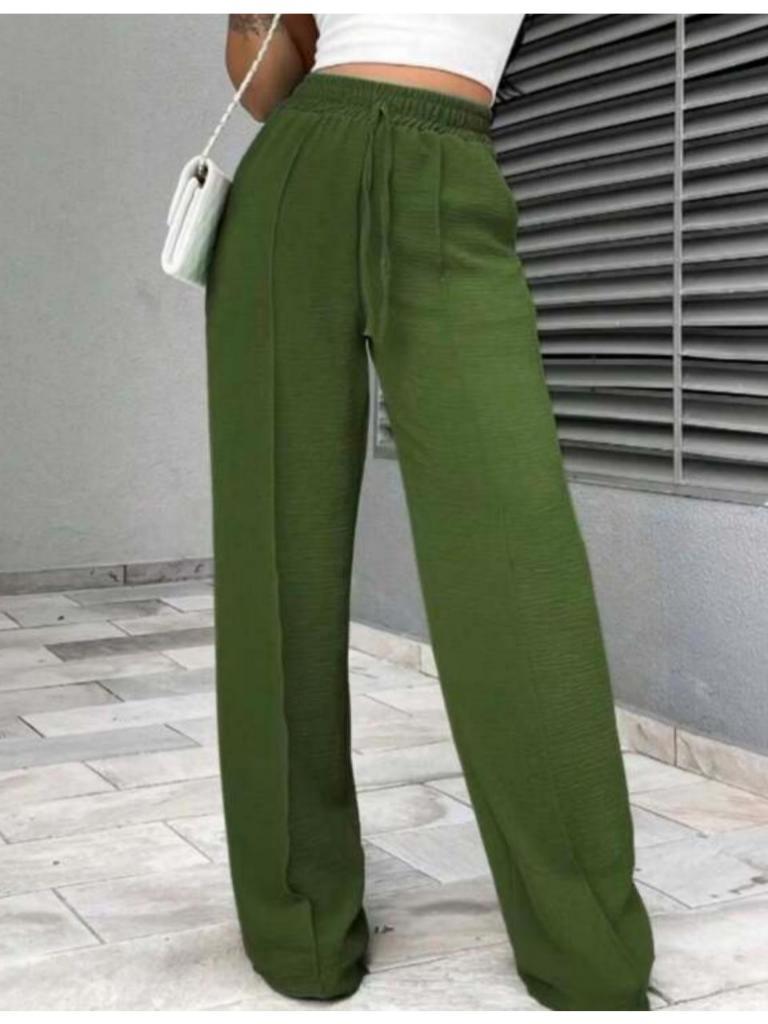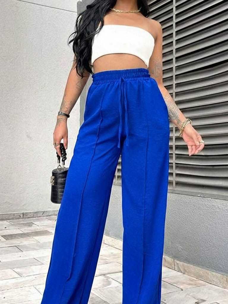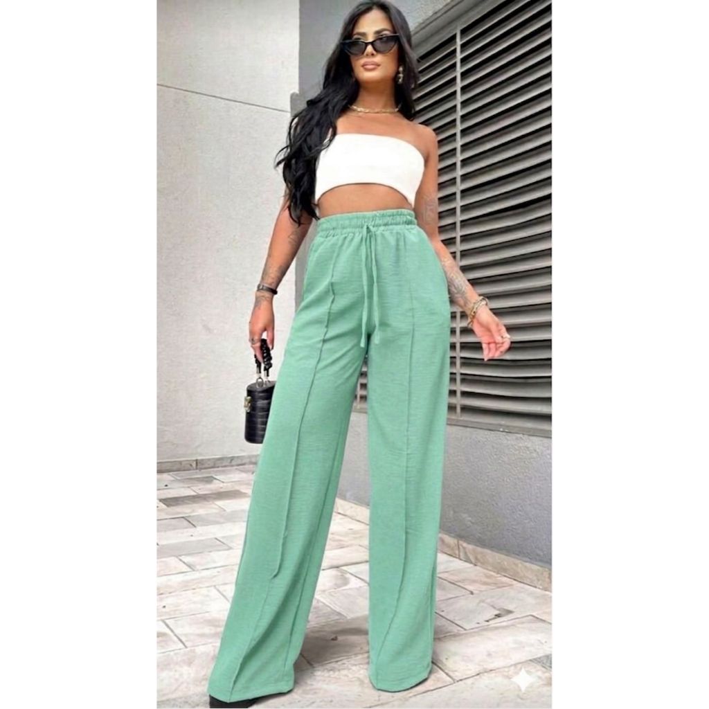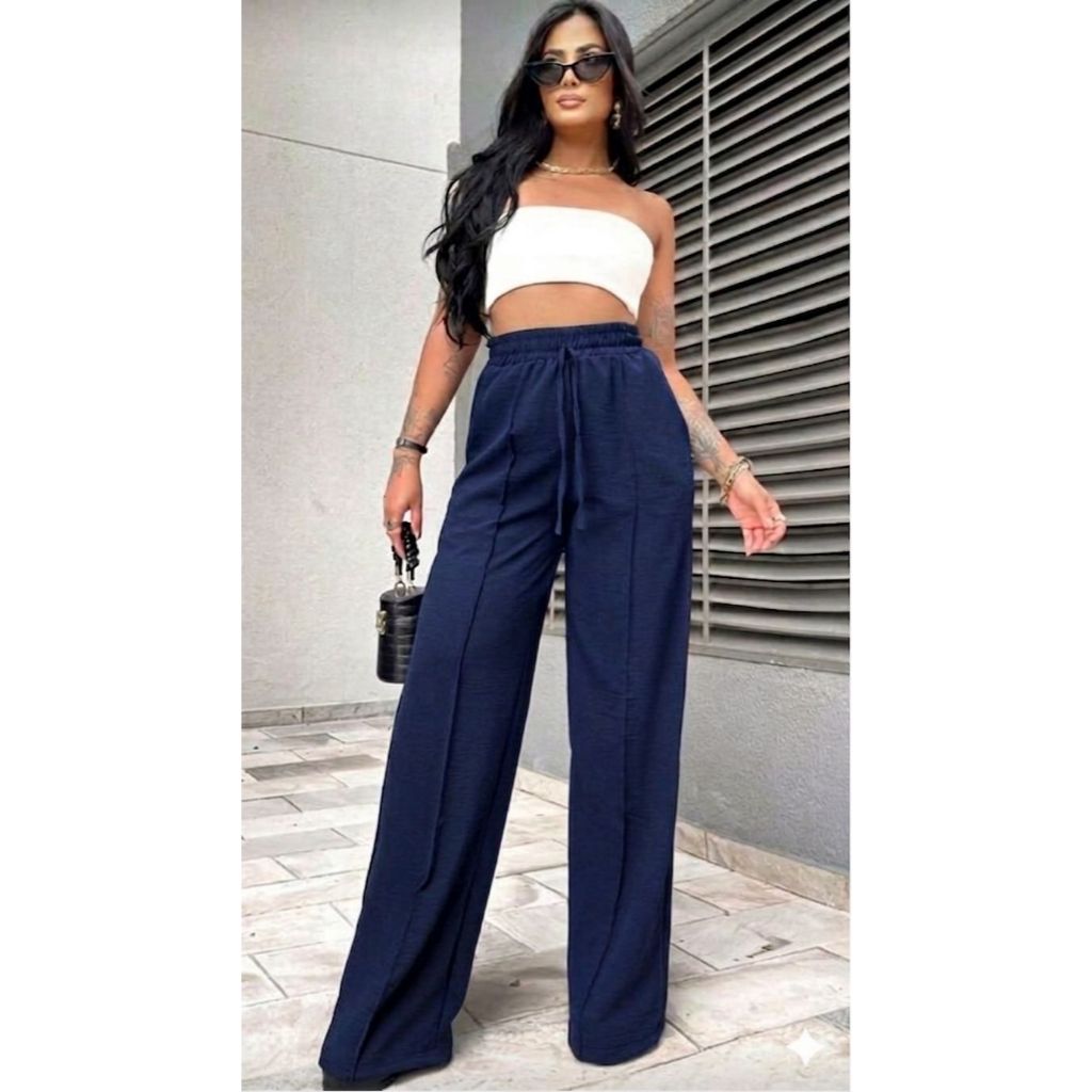 Calça Feminina Pantalona Wide Leg Duna Com Elástico na Cintura Ponteira de Madeira P-M-G-GG