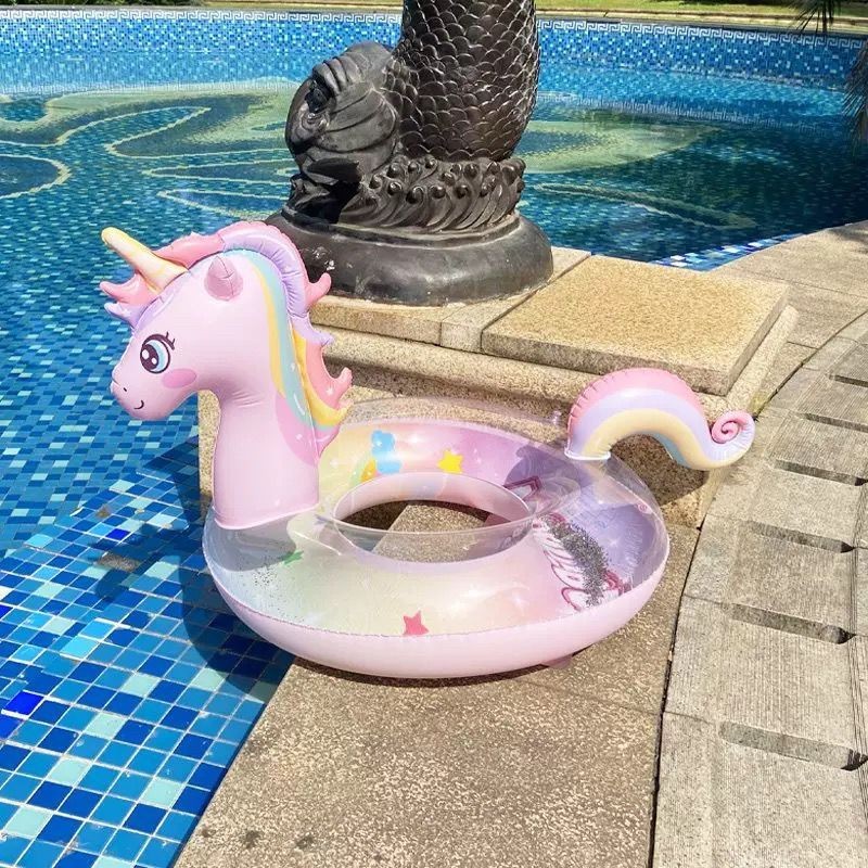 Boia Inflável Unicórnio Transparente C/Rosa Detalhes Colorido Infantil 70Cm