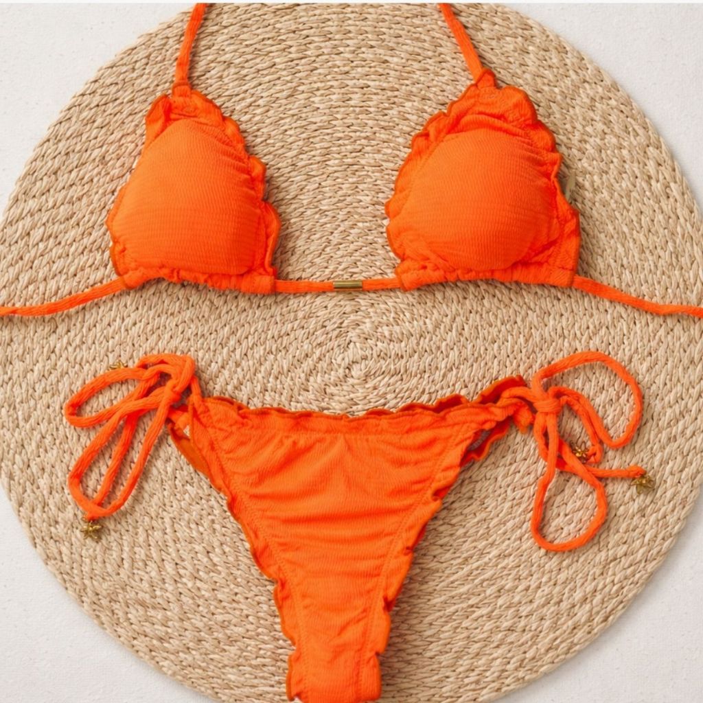 Biquíni Cortininha Feminino Ajustável Empina Bumbum De Amarração Com Bojo Removível Ripple Verão