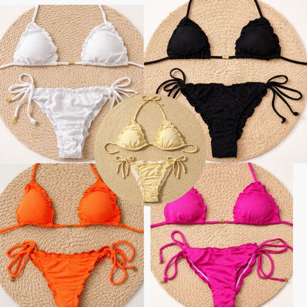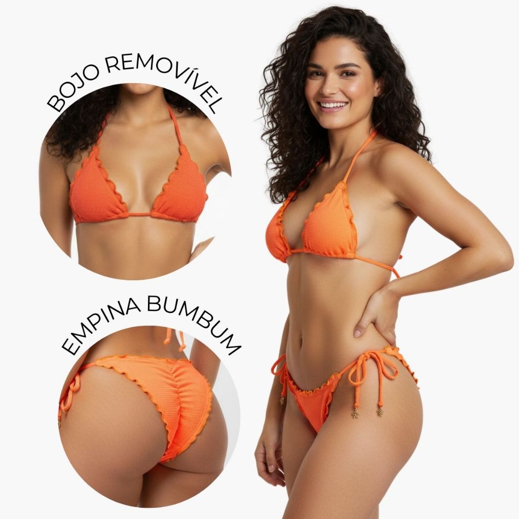 Biquini Cortininha Empina Bumbum Com Bojo Forrado De Amarrar Praia Piscina Férias Verão 2026