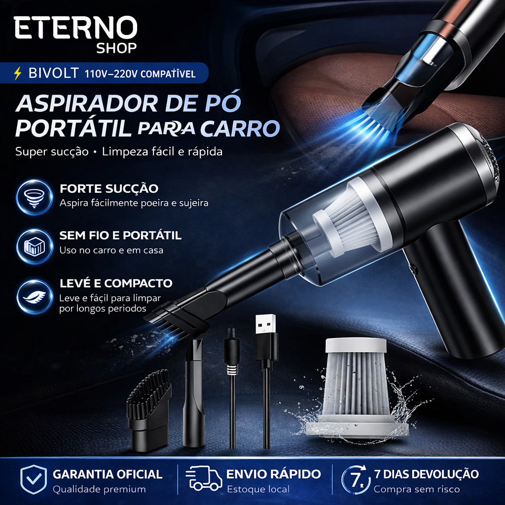 Aspirador 3 em 1 De Pó Usb Portátil Completo Premium Carro E Casa 2000mAh