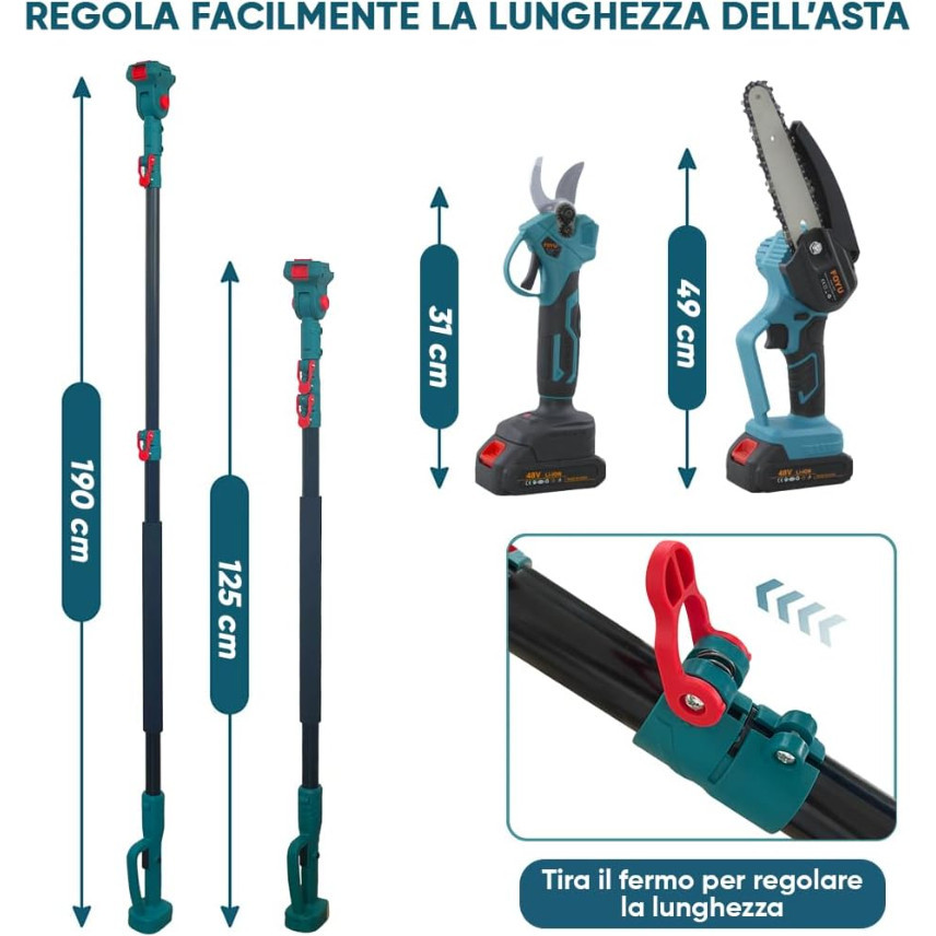 Kit Jardim 3 em 1 Motosserra Tesoura Elétrica Extensor Telescópico 2 Baterias 48V