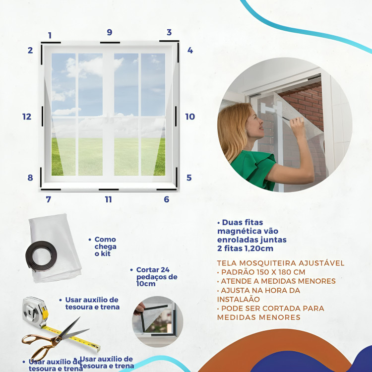 Tela Mosquiteira Magnética para Janela Ajustável Anti Insetos