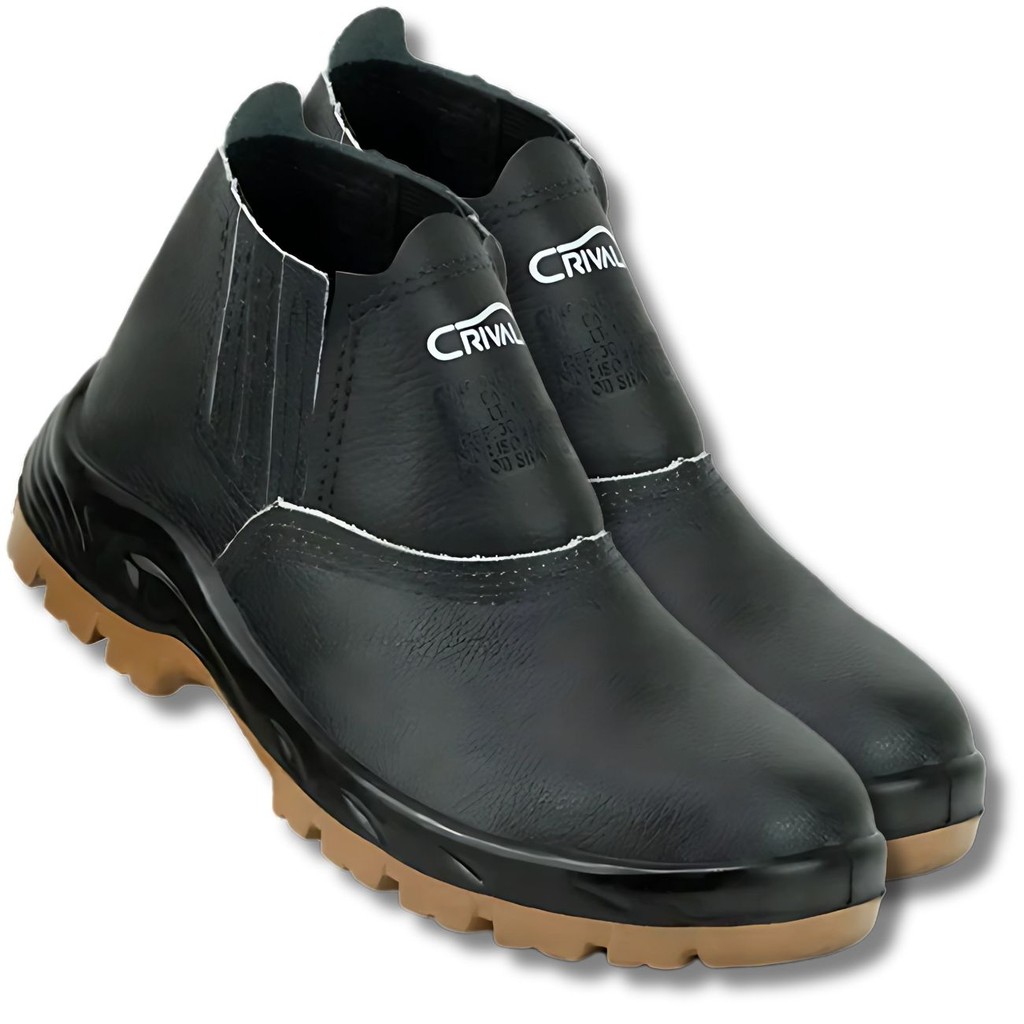 Botina Seguranca Crival CP080 com Bico PVC - Couro, Solado Bidensidade CA 40043 Conforto e Protecao