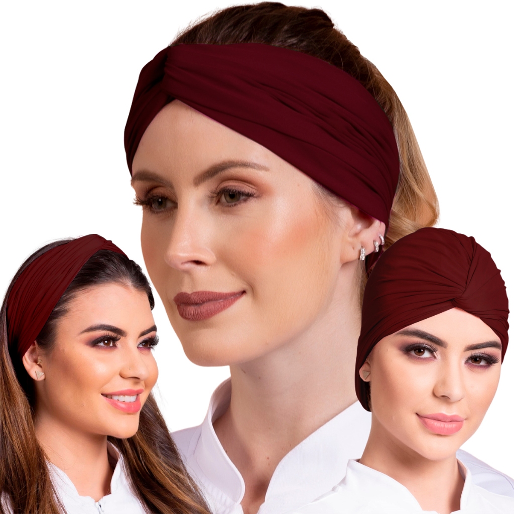 Touca Profissional De Saude E Cozinha Turbante Faixa 2 Em 1