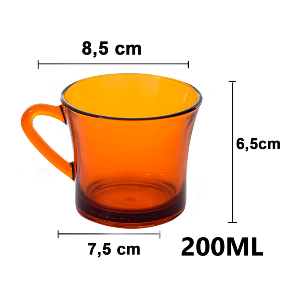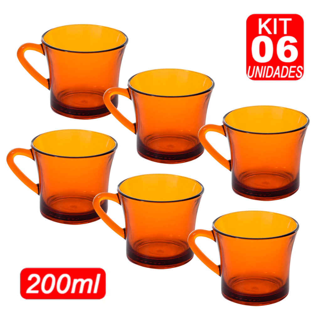 Jogo De 6 Xícaras de Cha e Cafe Sino Ambar 6 Unidades 200ml Original Desing Moderno