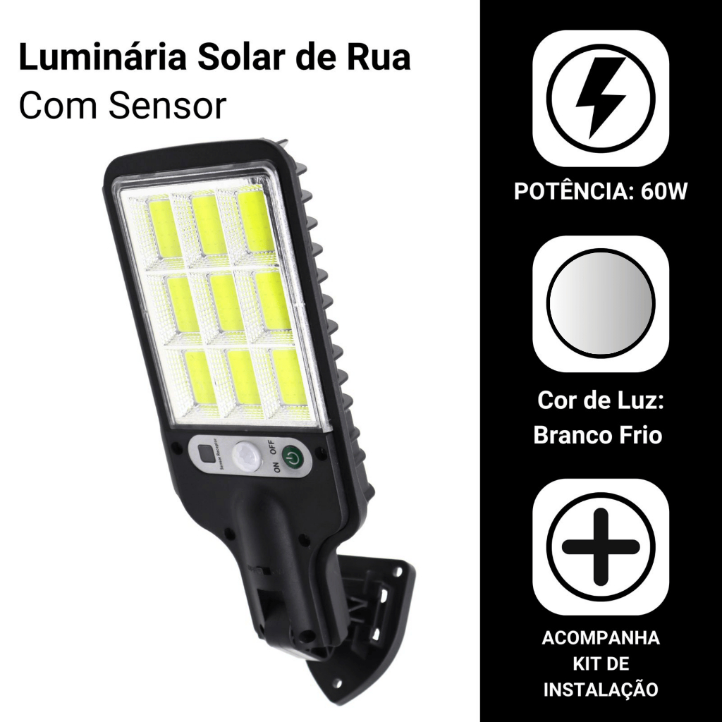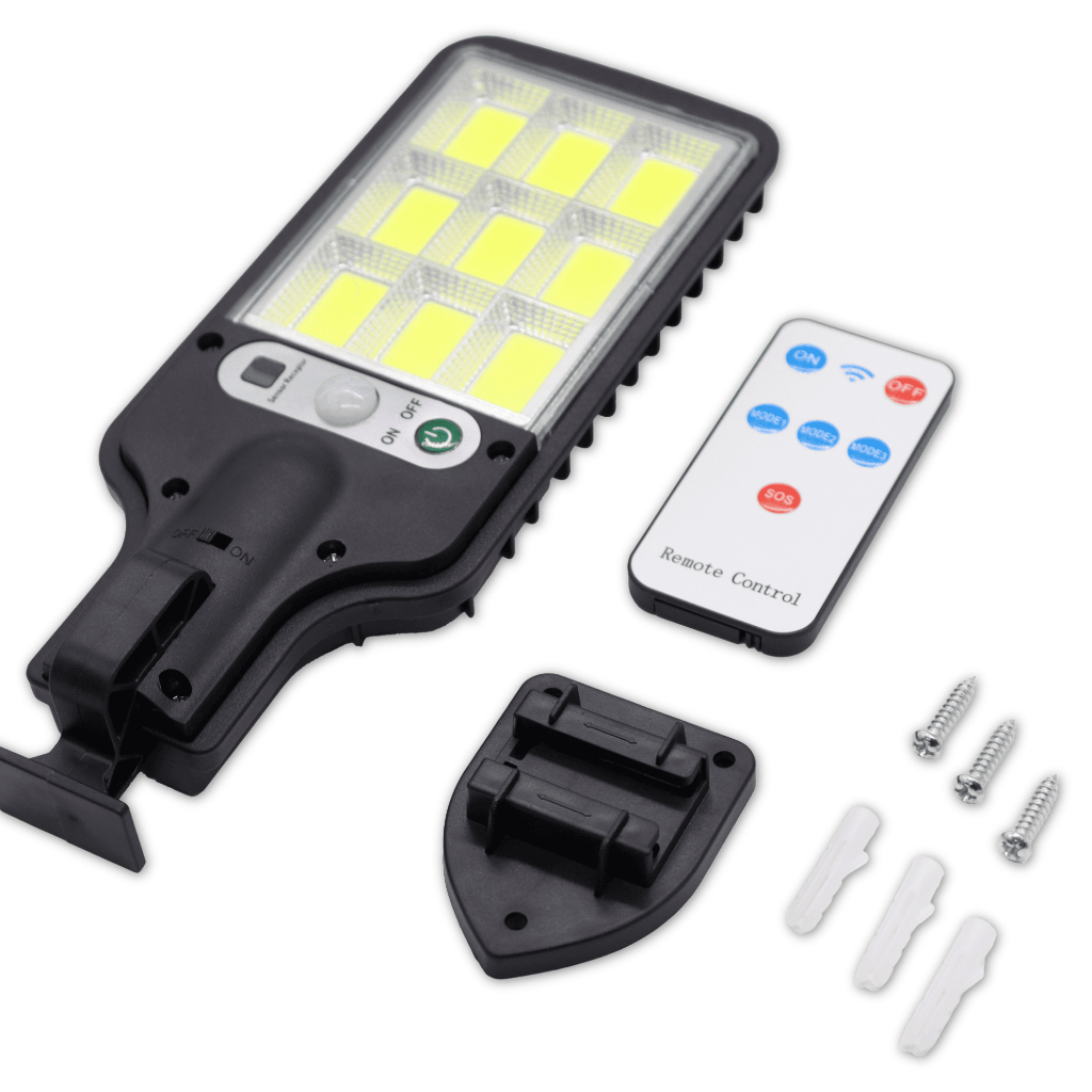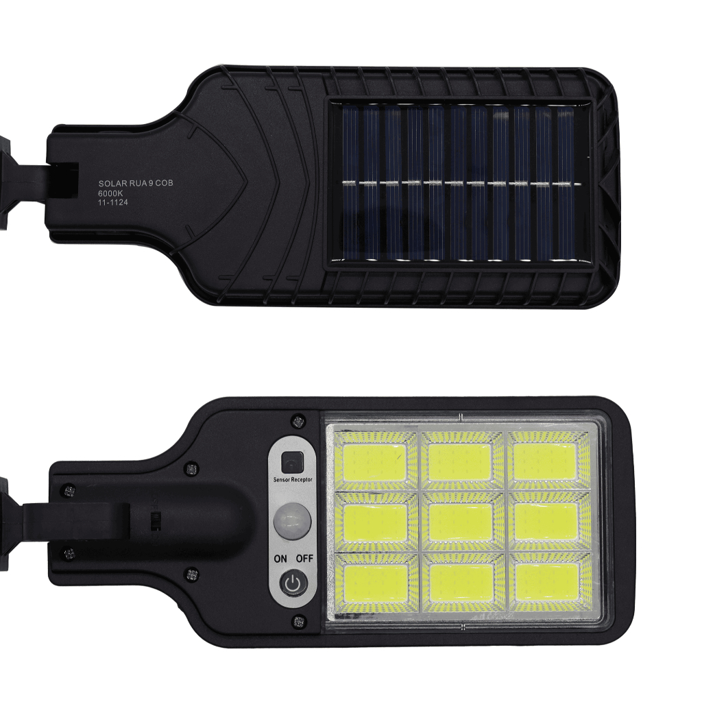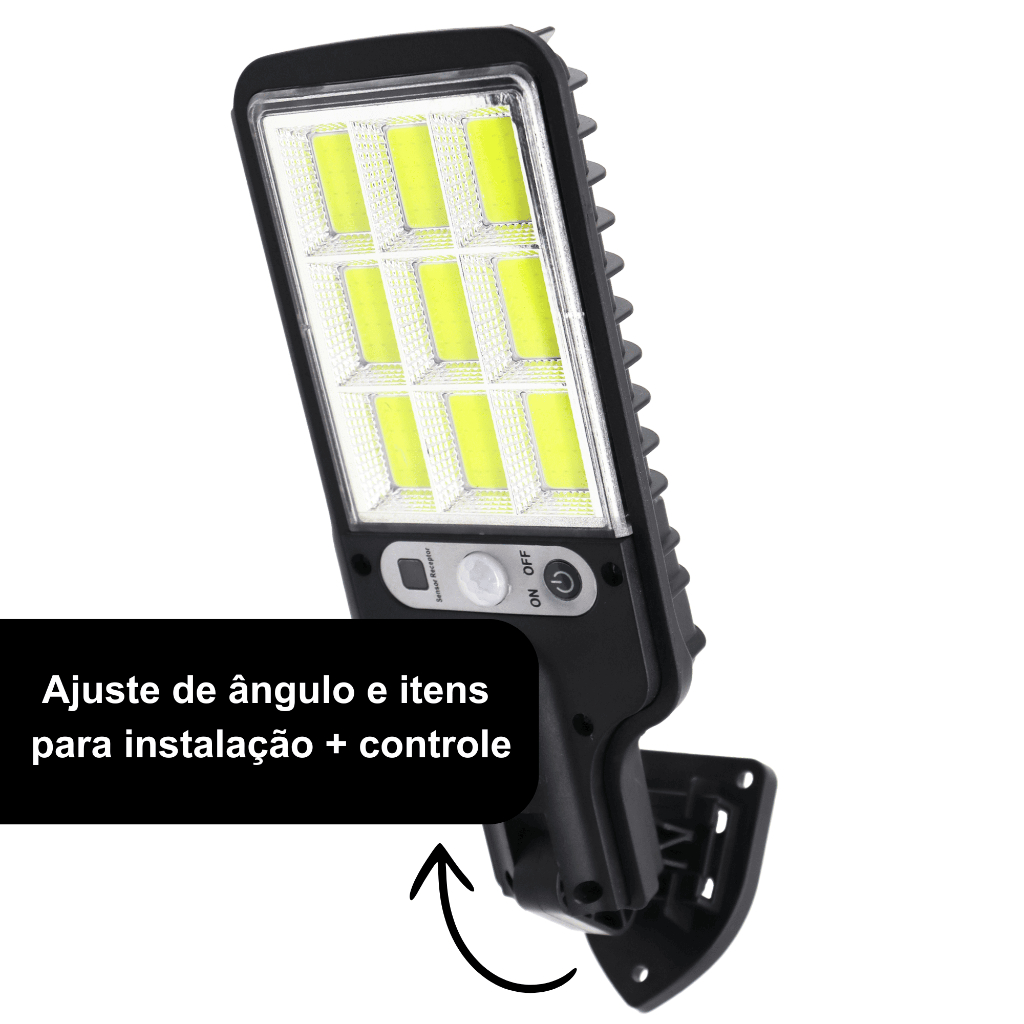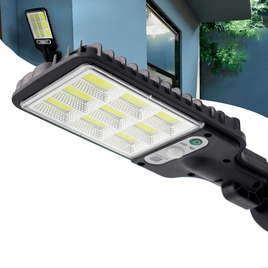 Mini Luminária Solar 9 Cob Poste Rua Parede Refletor Quadrada Prova D'Água Sensor Presença Movimento