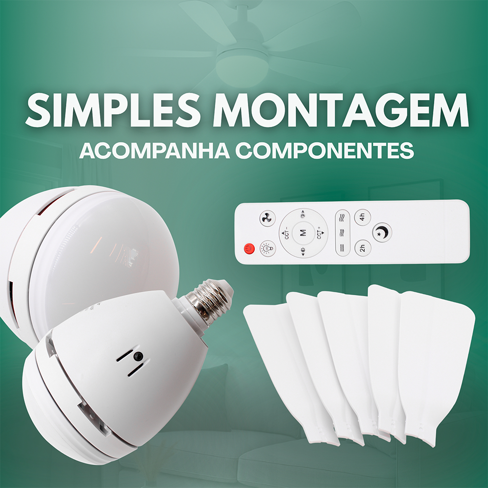 Ventilador de Teto Vt02 E27 Com Lâmpada Led Bivolt