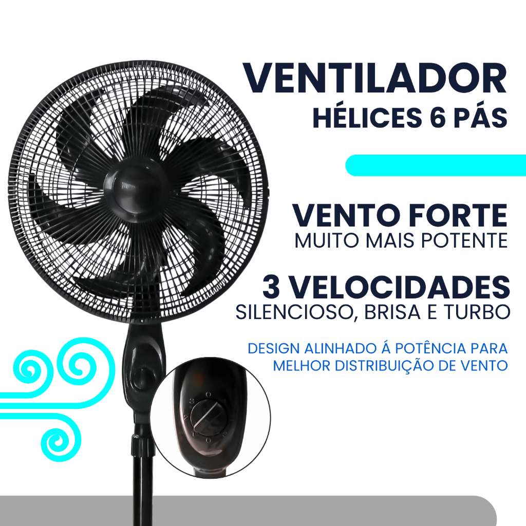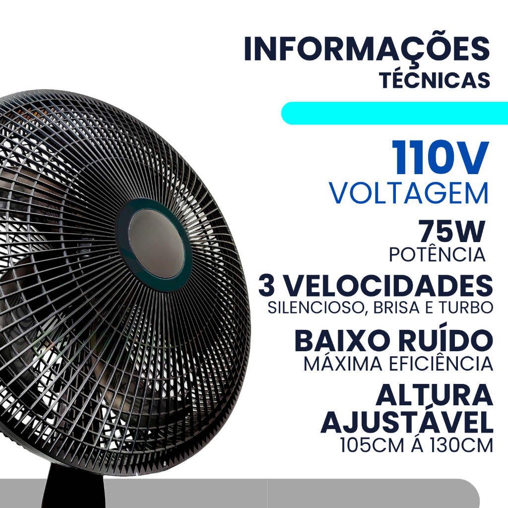 Ventilador De Coluna De Chão Silencioso Turbo Vento Forte 3 Velocidades