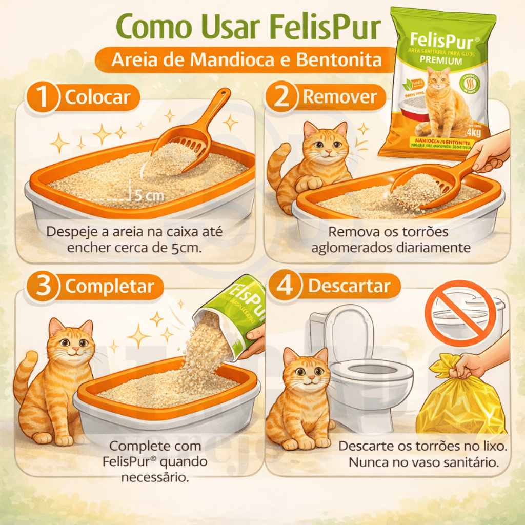 Areia Higiênica Biodegradável Mandioca + Bentonita Gato | 4kg a 20kg | Ultra Fino Anti-Odor