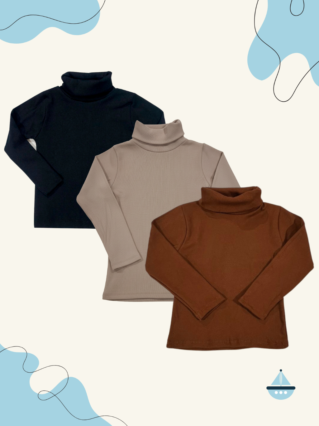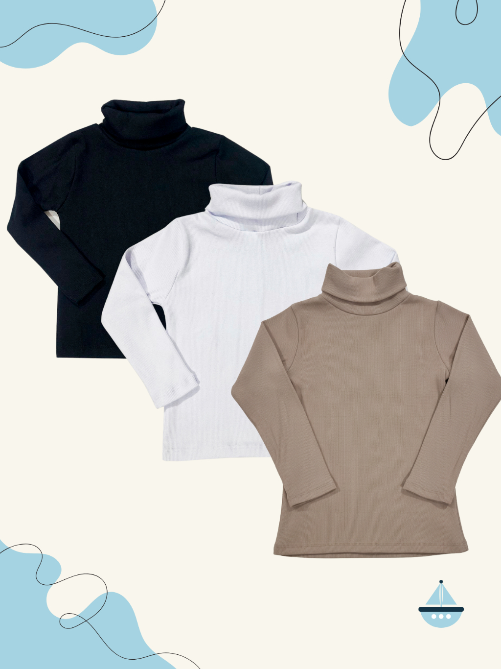 Kit 3 Cacharrel Infantil Gola Alta Elegante Manga Longa Roupa Escolar Confortável Igreja Algodao