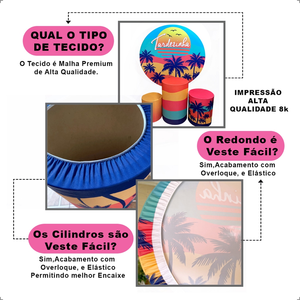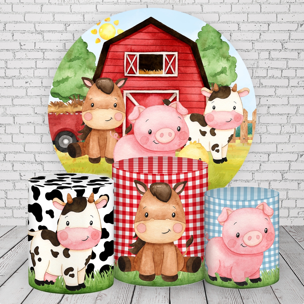 Kit Painel Redondo de Festa + Trio Capas de Cilindro Veste Fácil Tecido Fazendinha Animas SKP-195