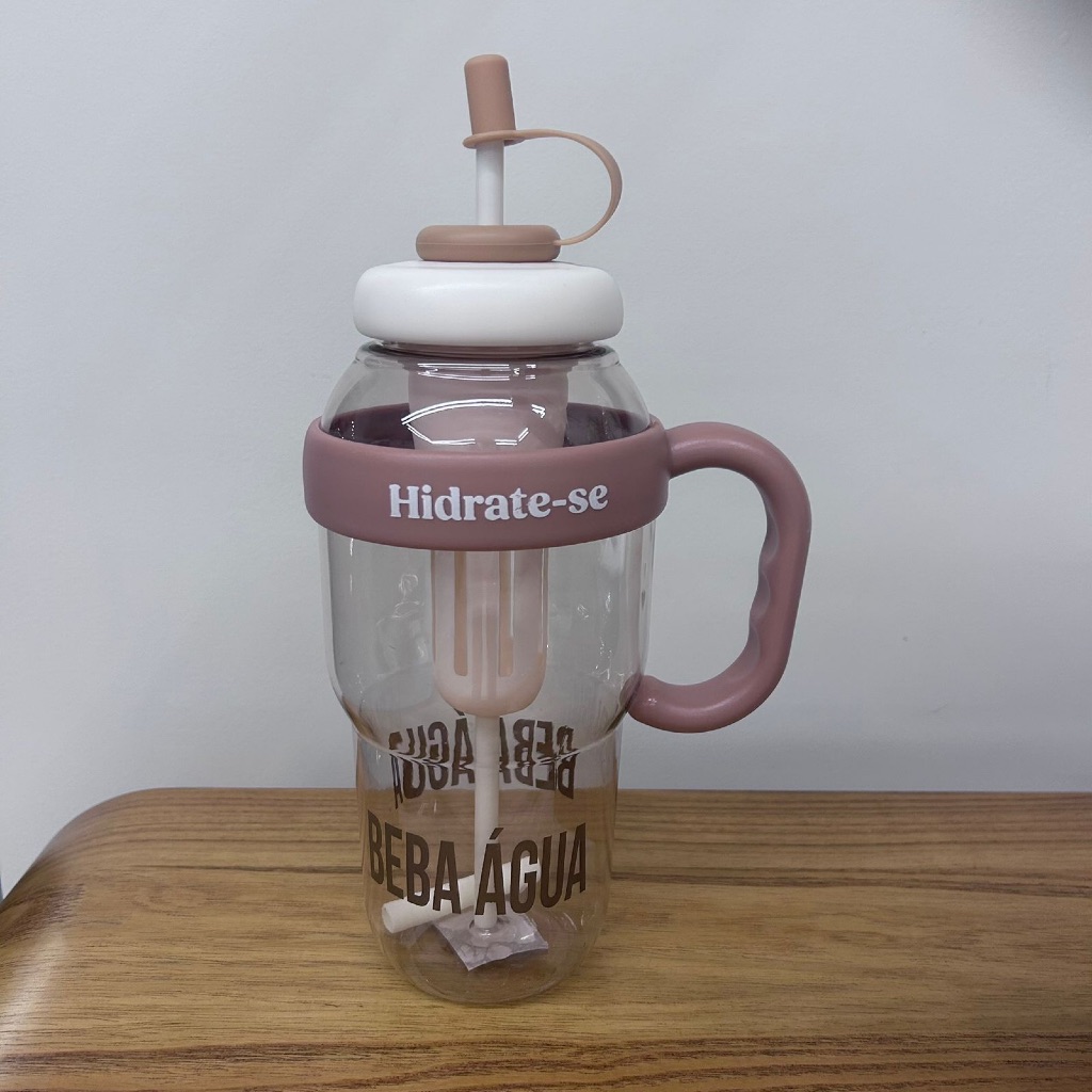 Garrafa de Água com Canudo de Silicone Grande com 1300ml Capacidade com Filtro Portátil ICE CUP
