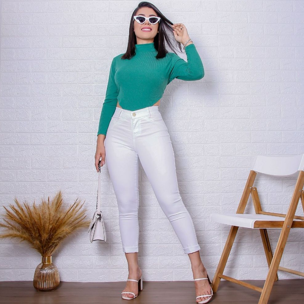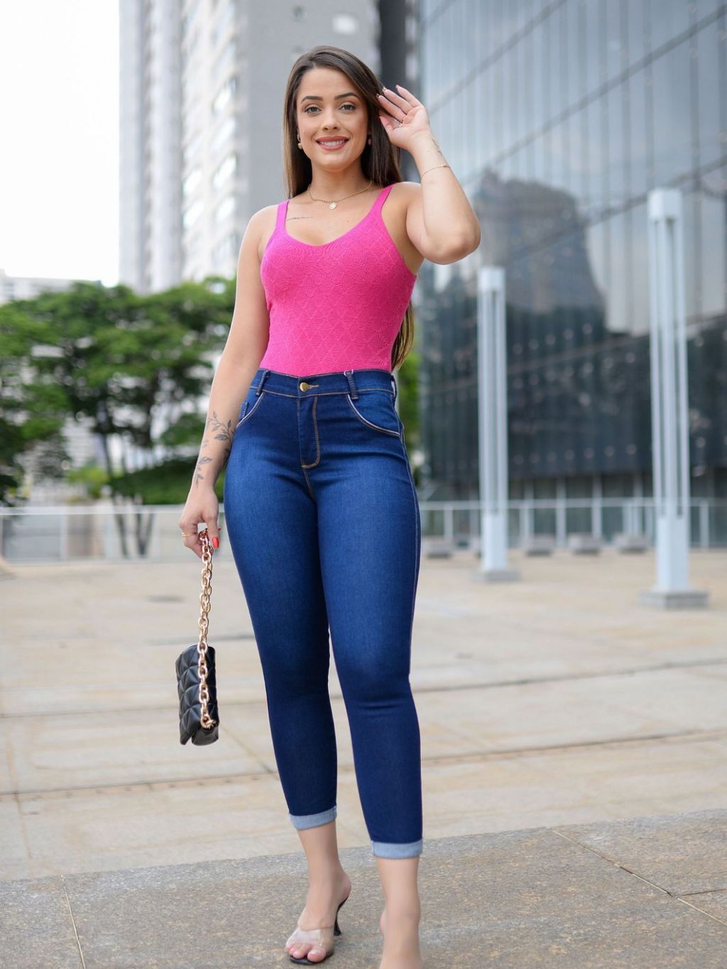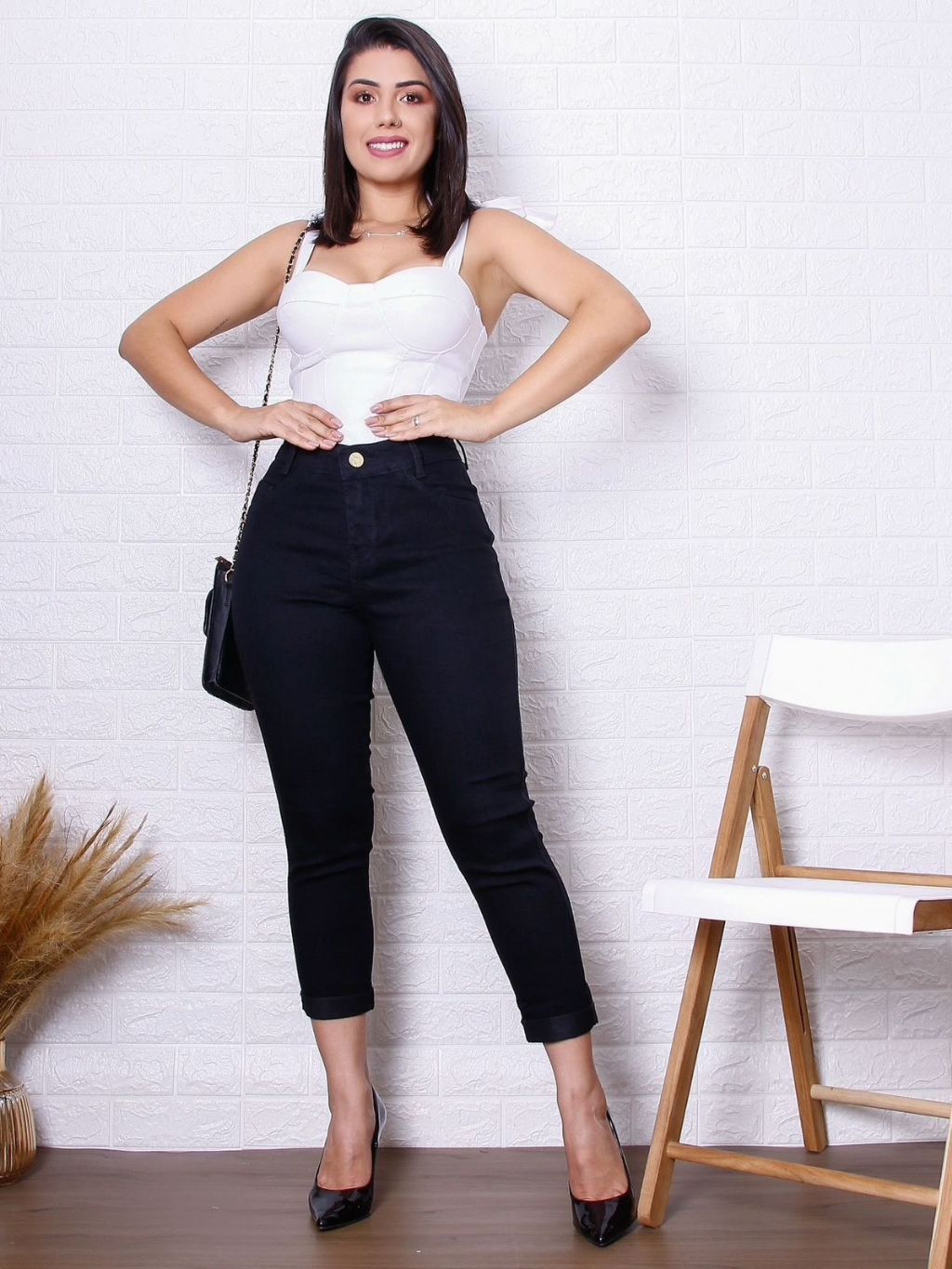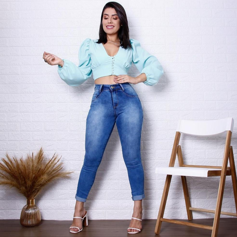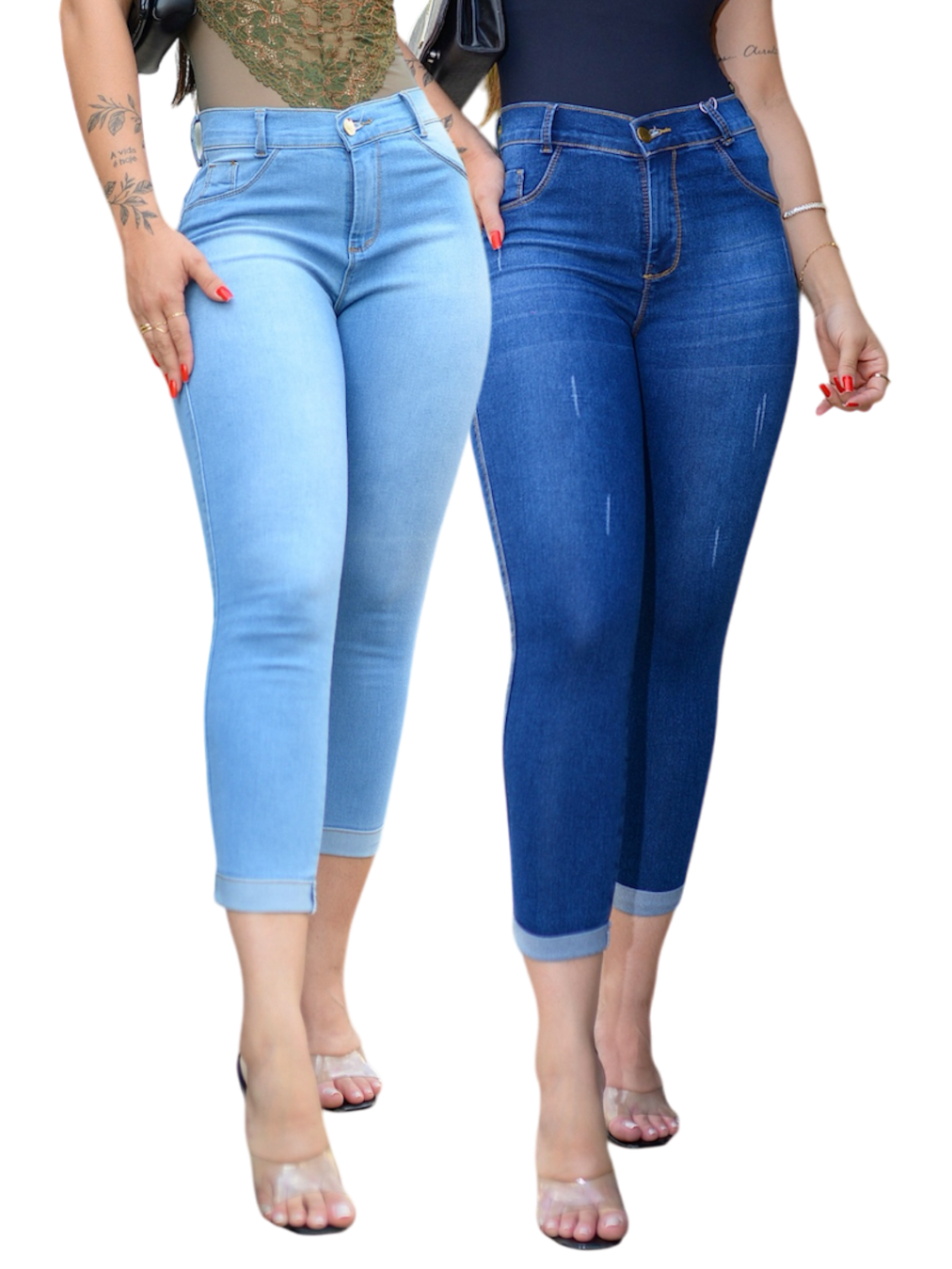 Calça Feminina Jeans Capri Modeladora Cintura Alta Empina Bumbum Com Elastano