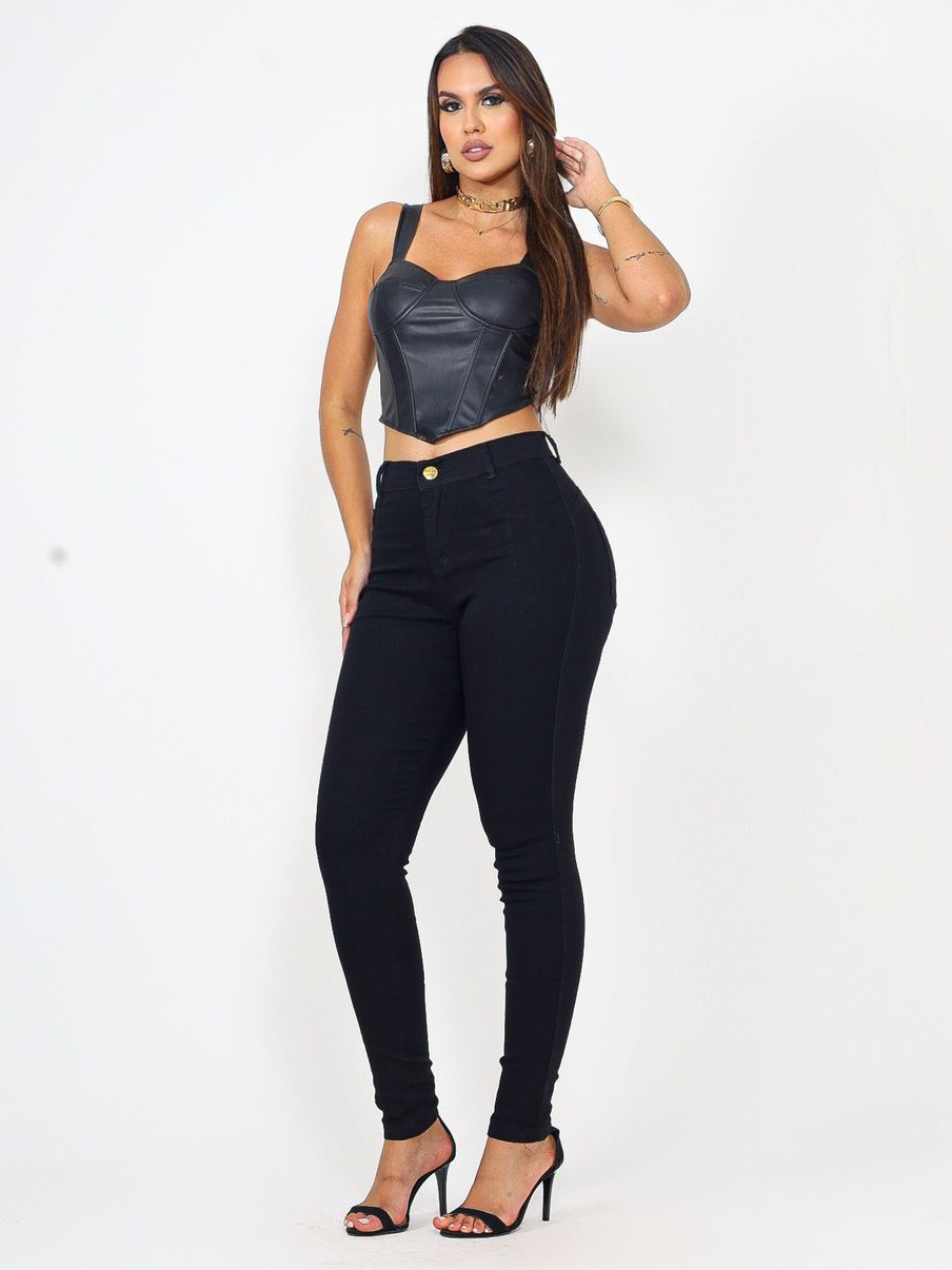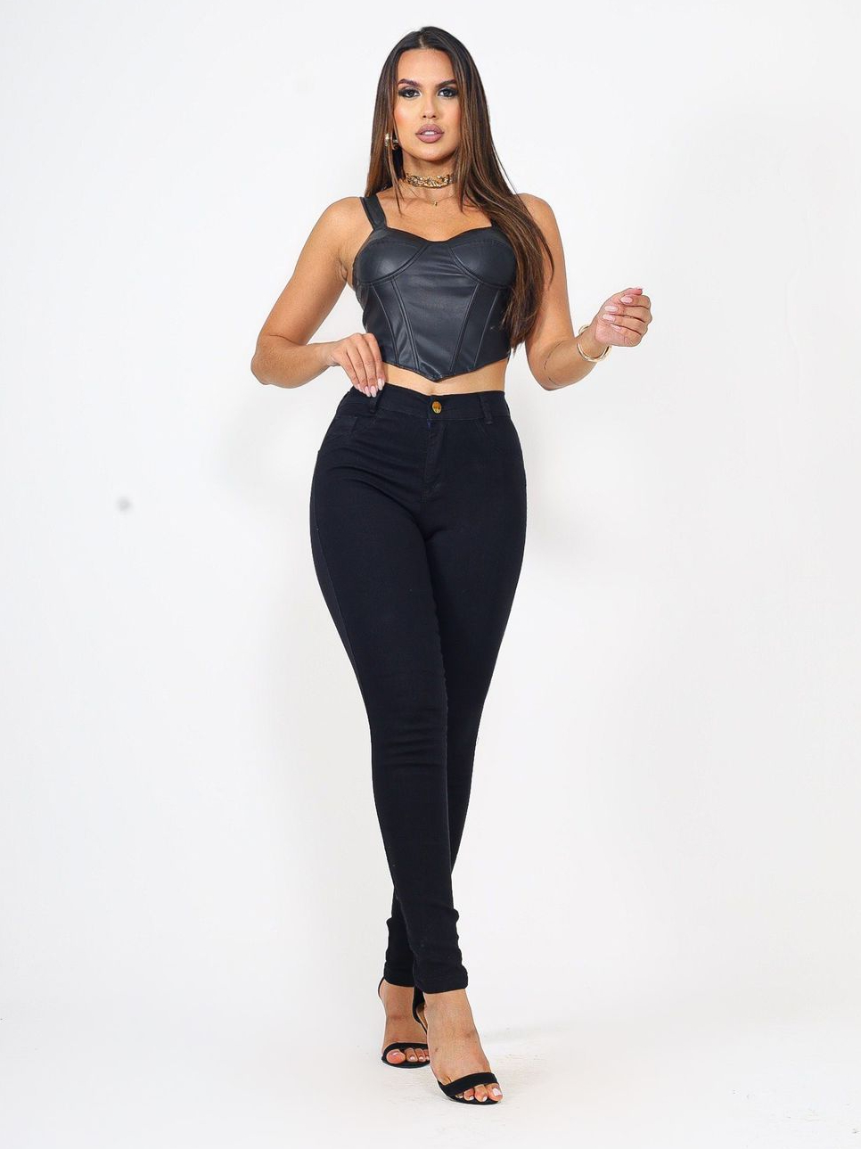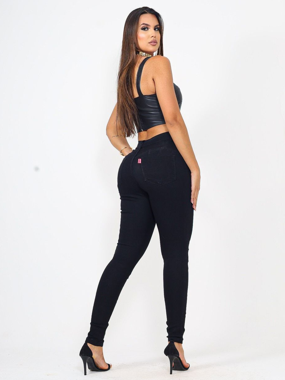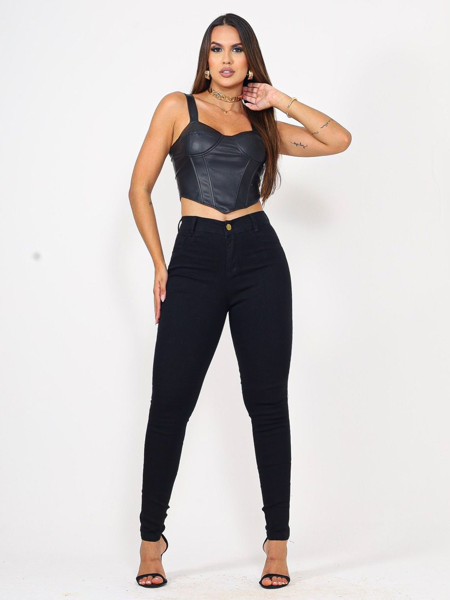 Calça Skinny Preta Feminina Jeans Com Lycra Cintura Alta Levanta Bumbum