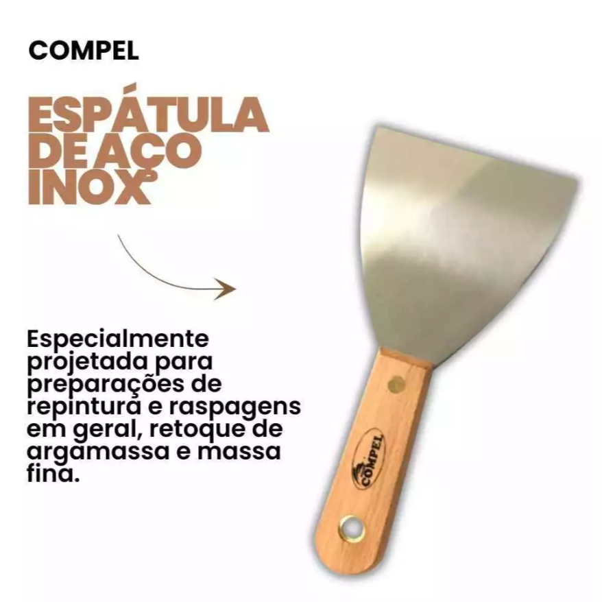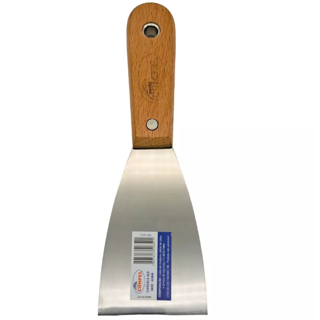 Espátula De Aço Inox Cabo De Madeira Compel Profissional - Vários Tamanhos