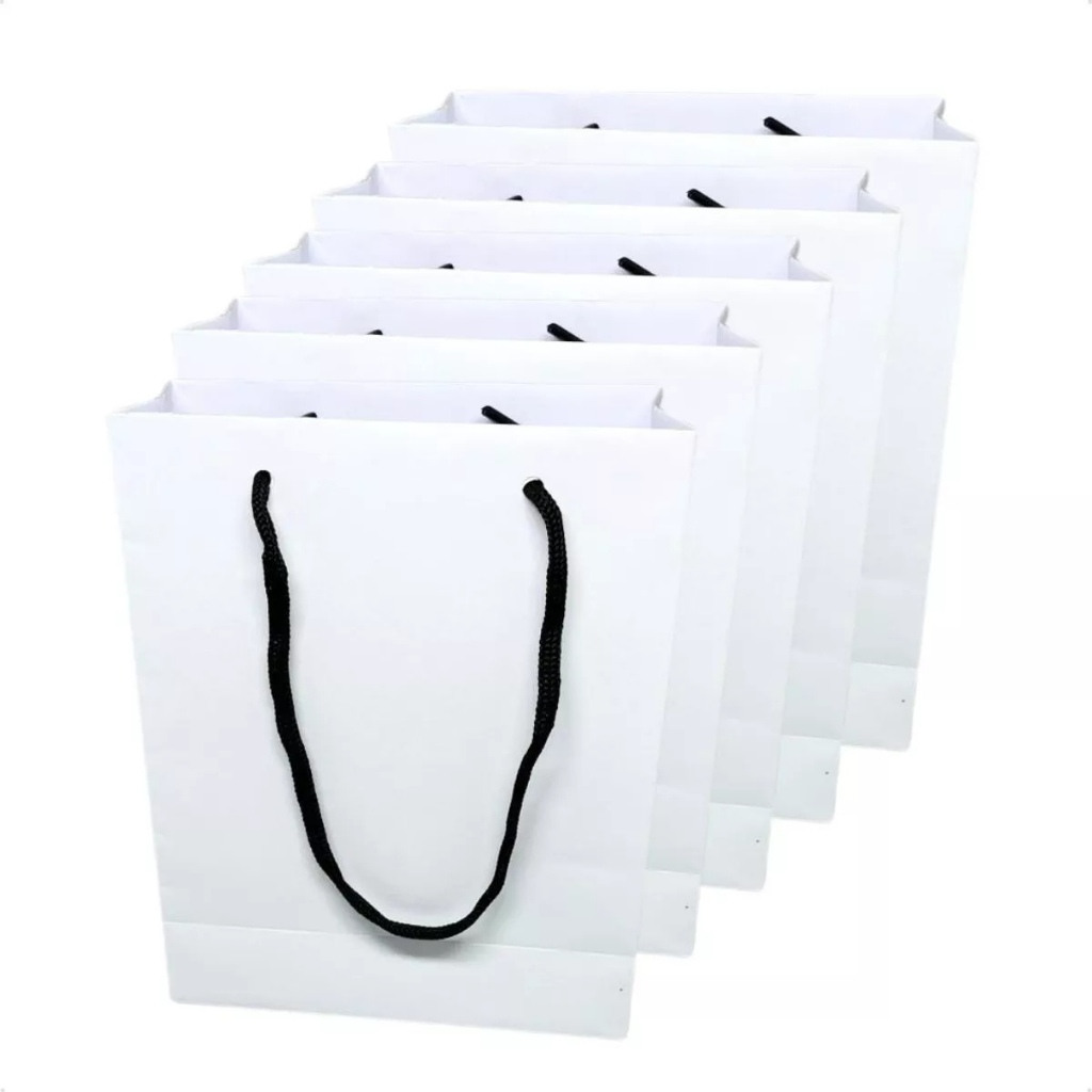 Kit 20 Sacolas de Papel Kraft e Offset Branco para Presentes, Lembrancinhas e Decoração 18x14x6 cm