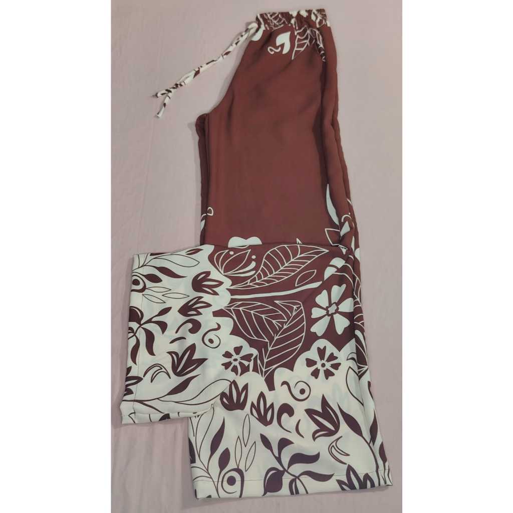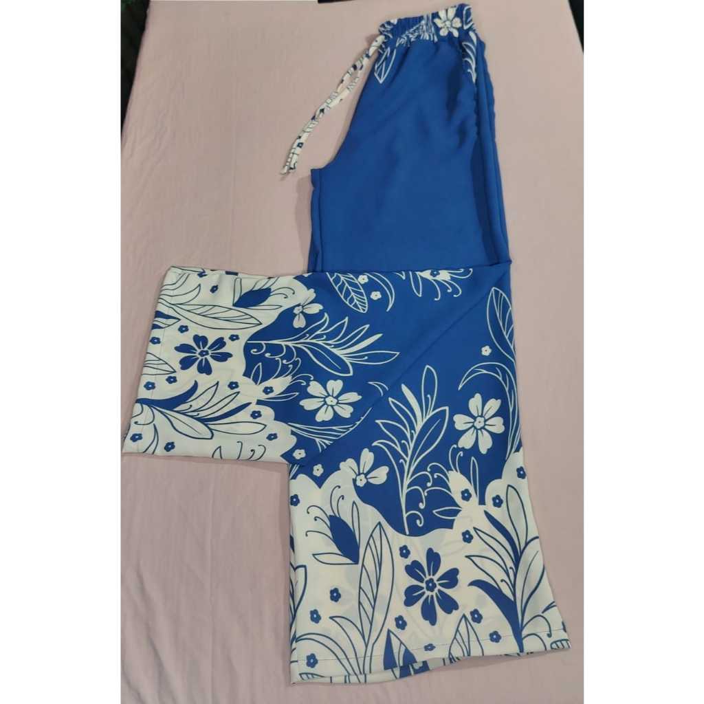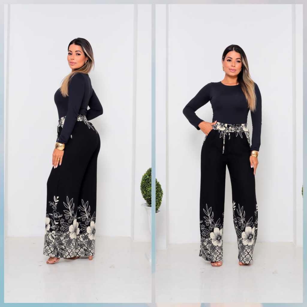 Calça pantalona femenina cintura alta com bolso tecido DUNA estampado