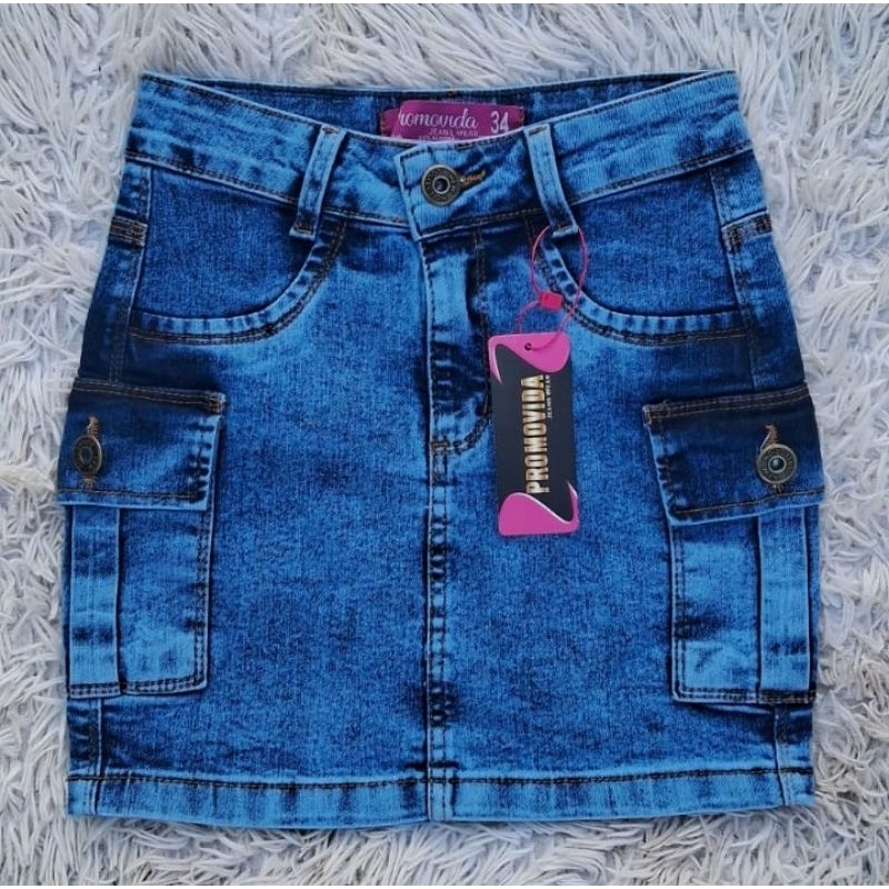 Saia cargo jeans feminino Premium marmorizado em gel modelagem levanta bumbum cintura alta