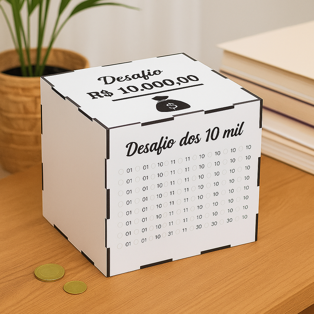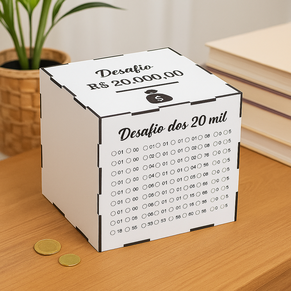 Cofre MDF Desafio 1Mil / 5Mil / 10Mil / 20Mil pra juntar dinheiro , escolha Sua Meta.