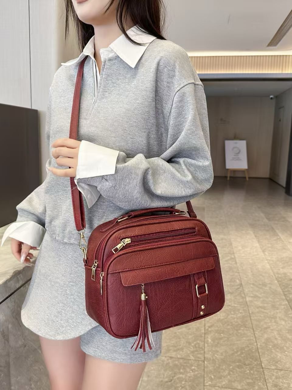 Bolsa Feminina Com Alça Lateral Transversal Faixa de Mão De Couro S2420 JZ