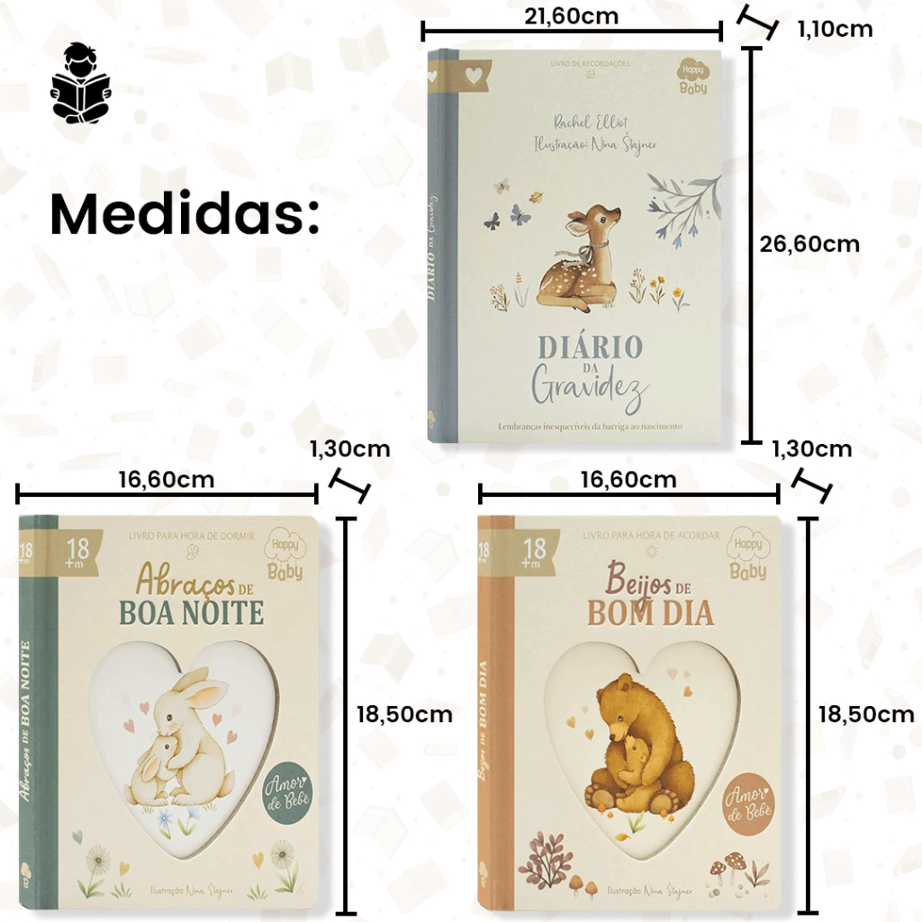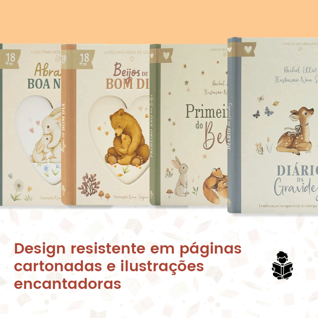 Livro de Memórias da Gravidez e Infância - Recordações do Bebê - Capa Dura e Ilustrações Infantis