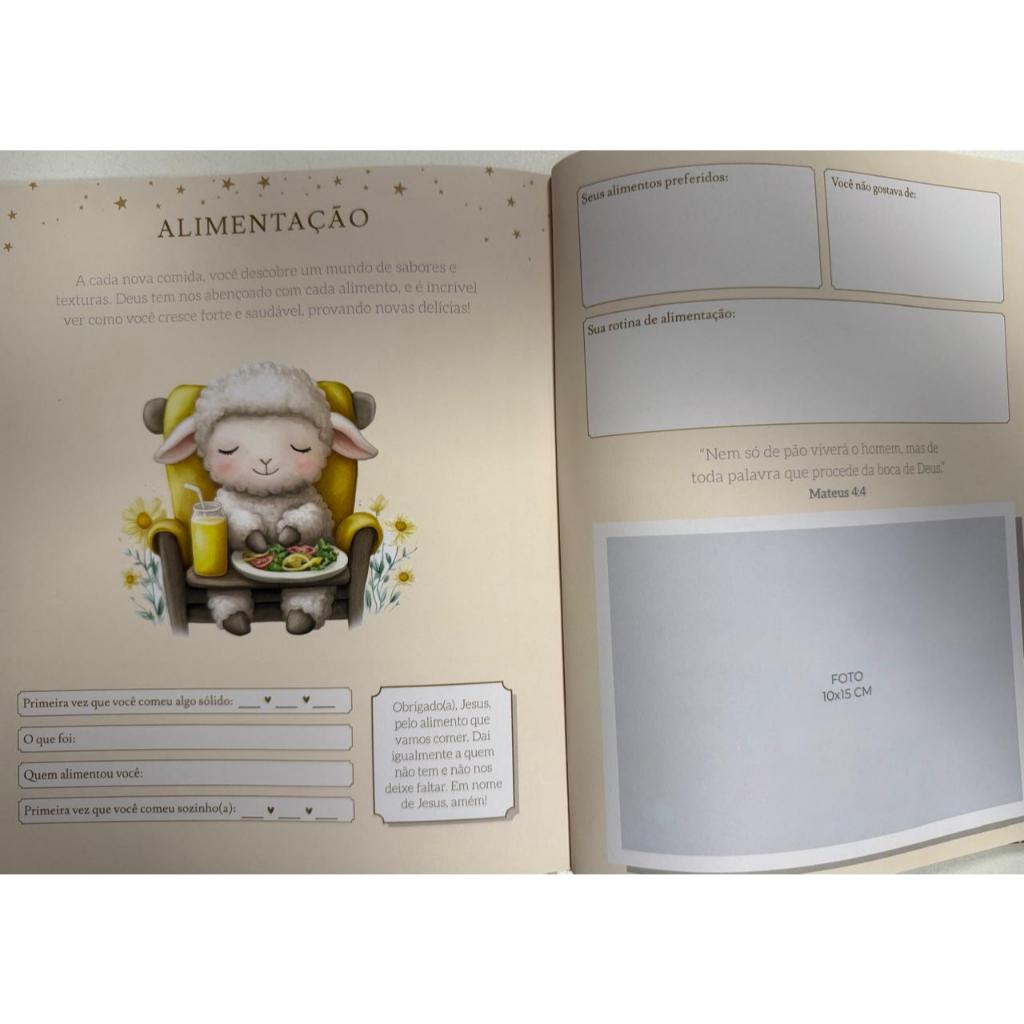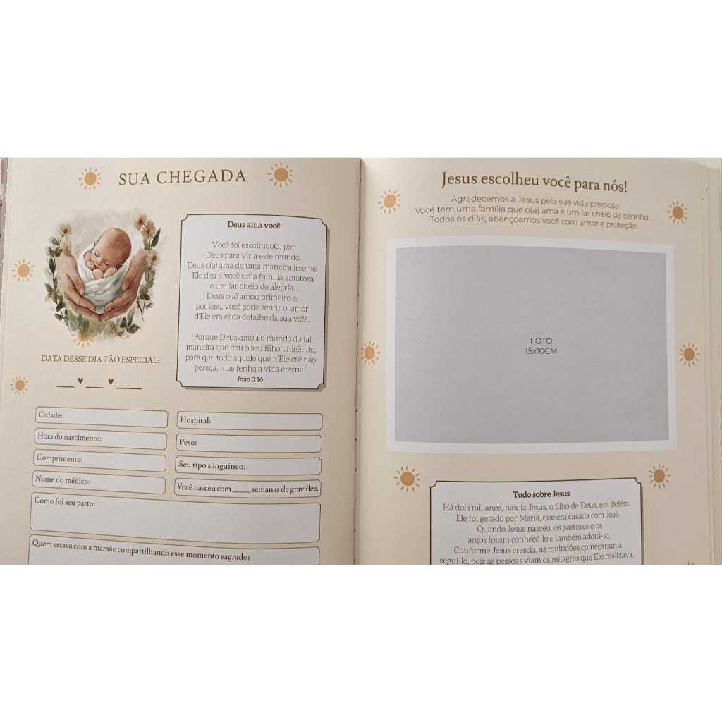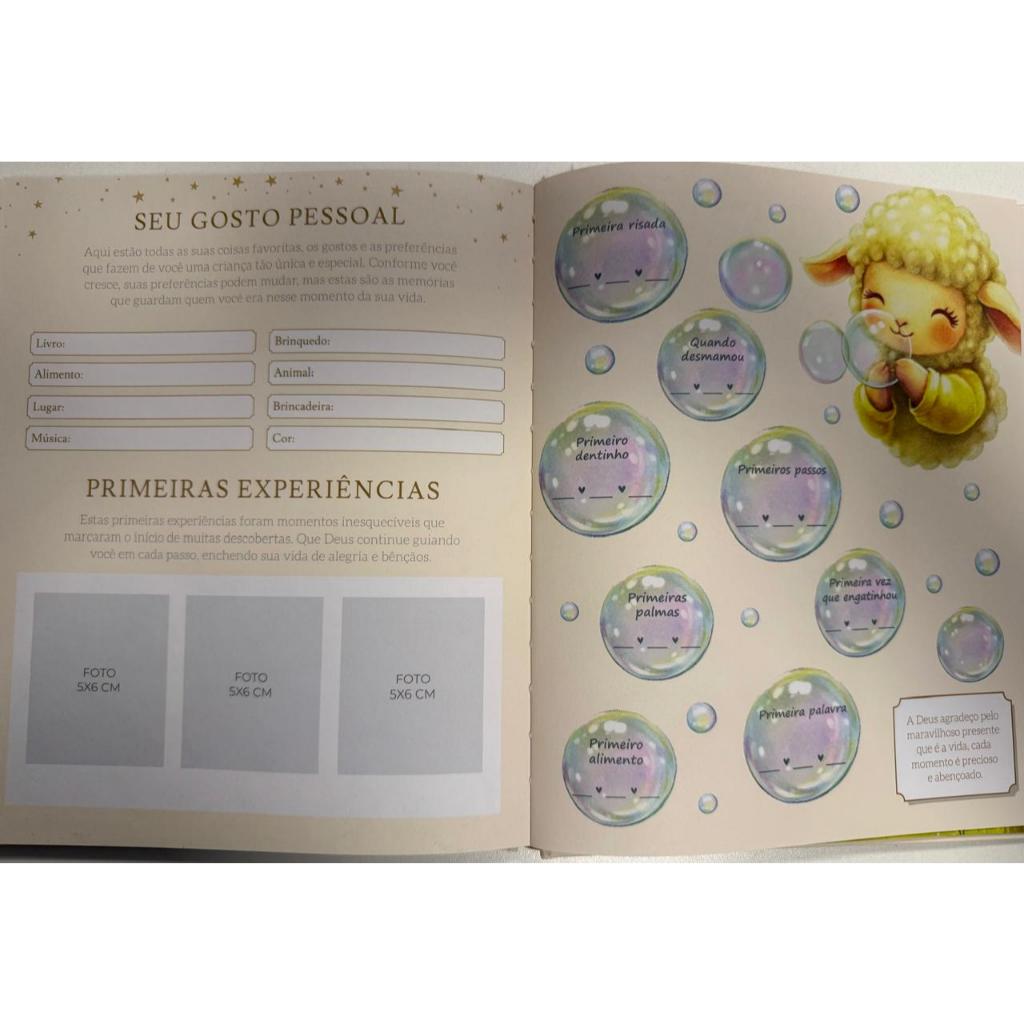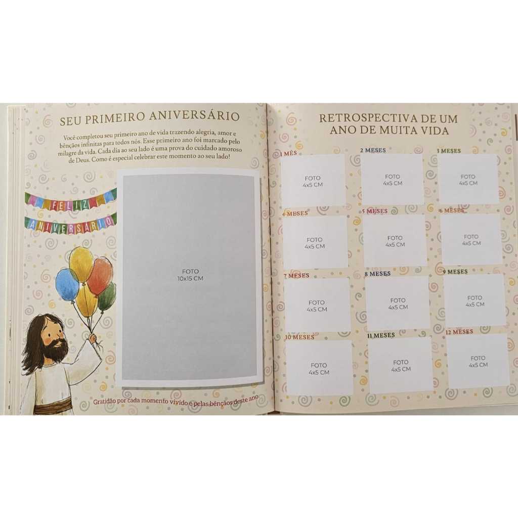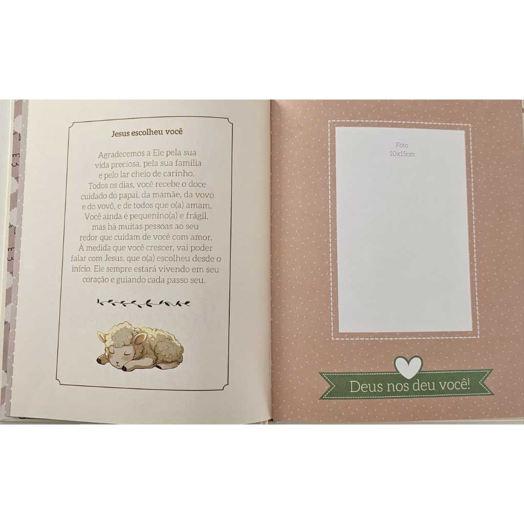 Livro Recordações do Bebê Cristão – Álbum de Memórias com Capa Dura e Ilustrações Religiosas
