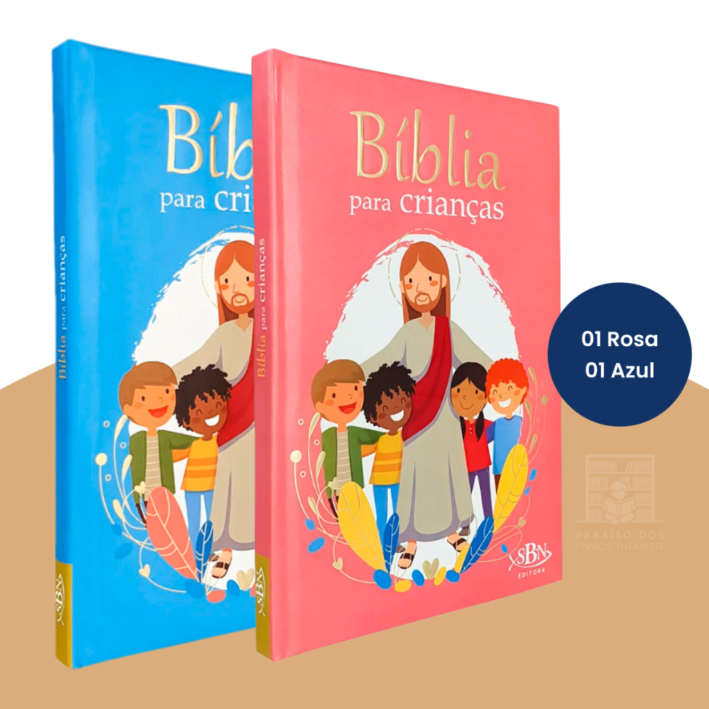 1 a 5 uni - Bíblia para Crianças Ilustrada Infantil Menino e Menina - Azul e Rosa - Para Crianças
