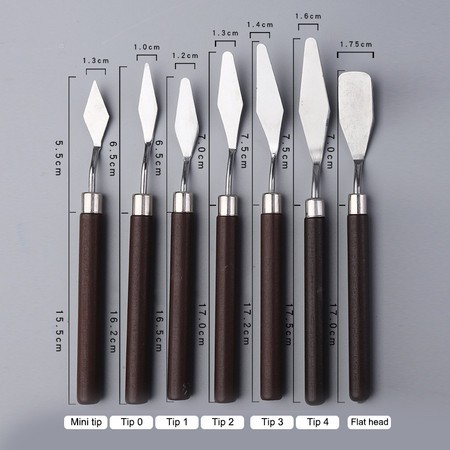 7Pçs Paleta De Faca De Aço Inoxidável Mista Para Pintura A Óleo / Espátula Raspador