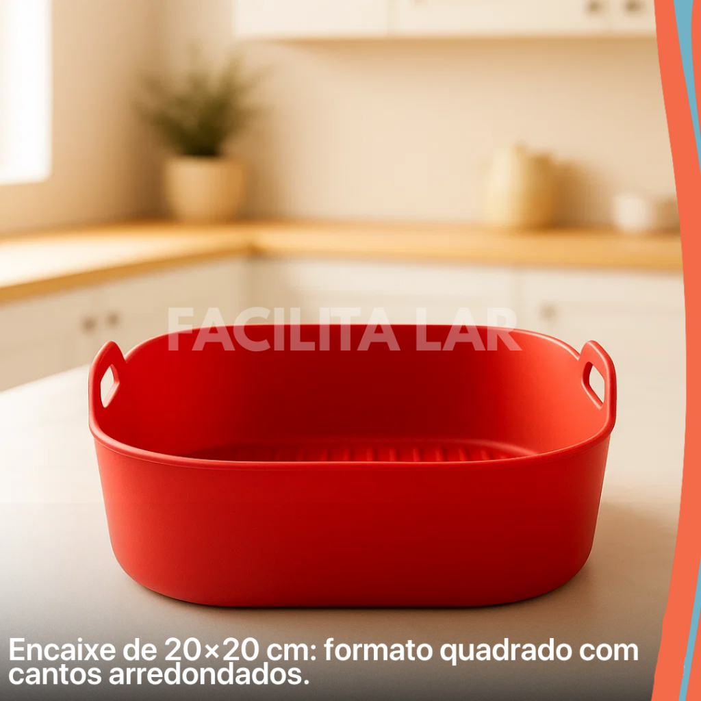 Forma de Silicone Quadrada para Airfryer Grande 19x19 Fritadeira Elétrica 4 à 6 Litros