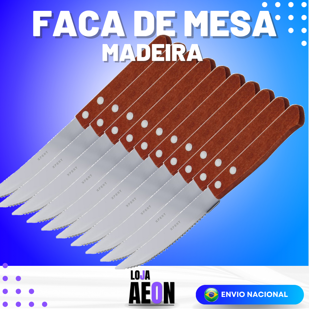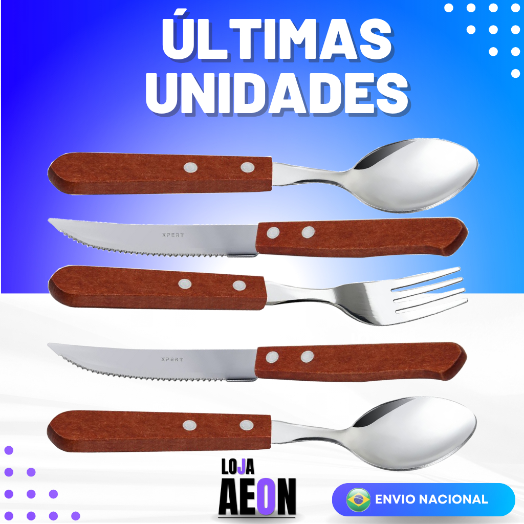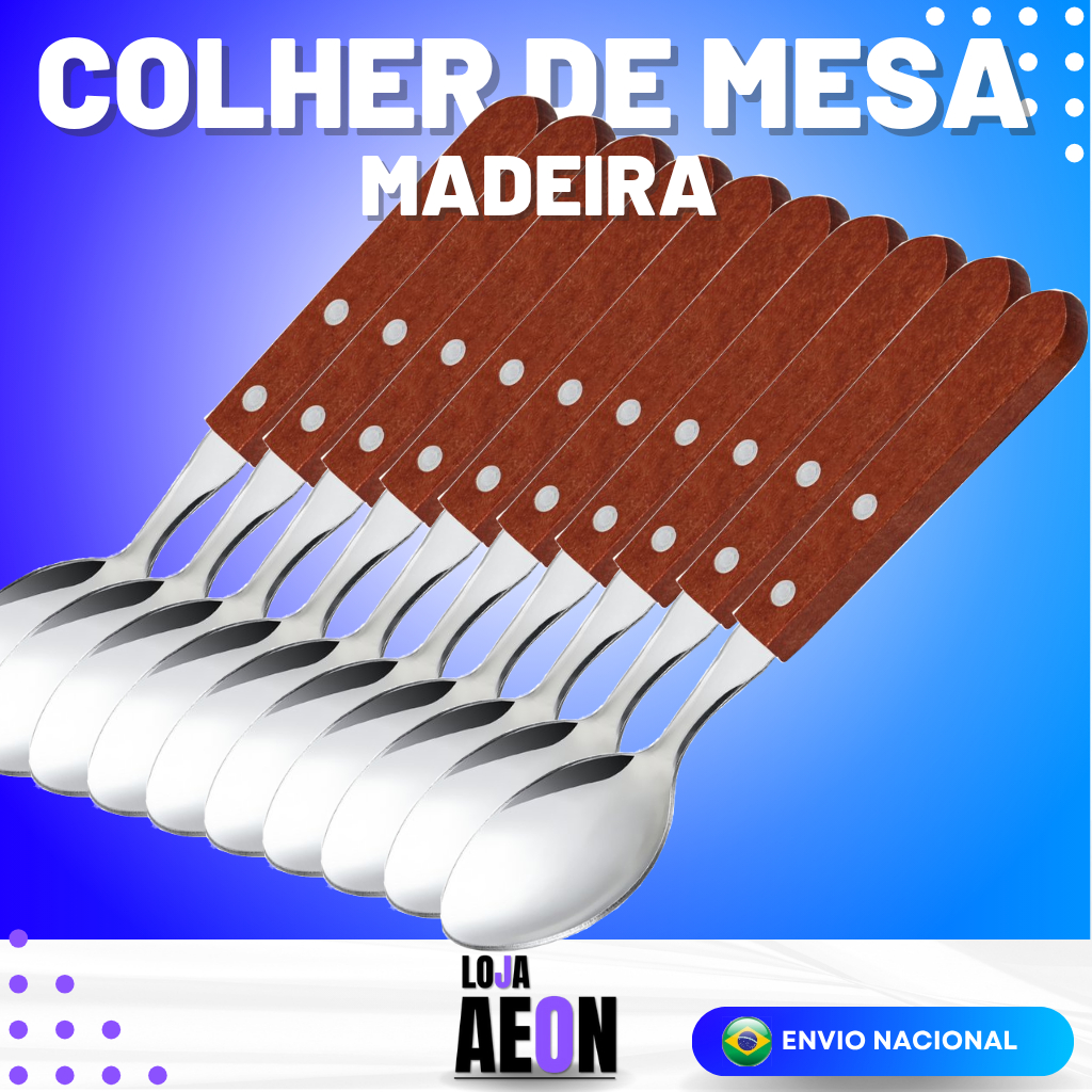 Kit 12 Colheres 12 Garfos 12 Facas Talher Inox Cabo de Madeira Casa Cozinha Restaurante Buffet