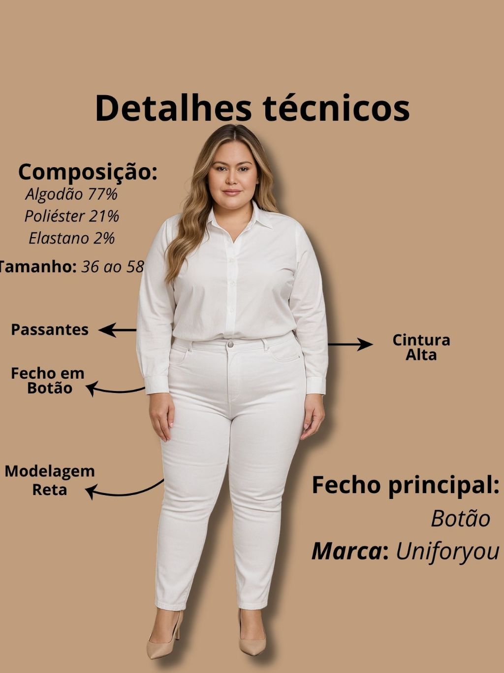 Calça Jeans Feminina Plus Size Branca Cintura Alta Levanta bumbum com pouca Lycra Elastano Uniforme