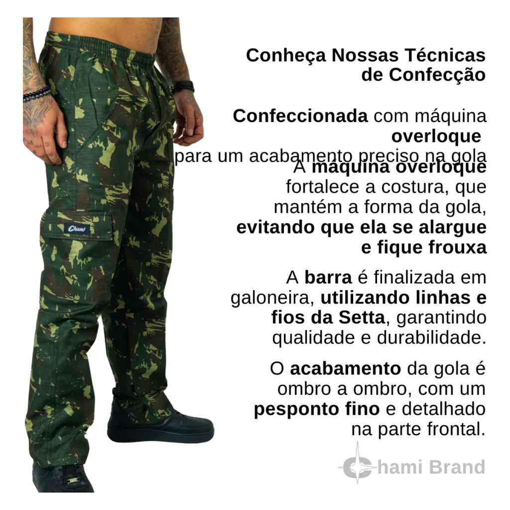 Calça 6 Bolsos Riph Stop Camuflada Tática Exercito Reforçada Militar Elástico Cordão Casual Street
